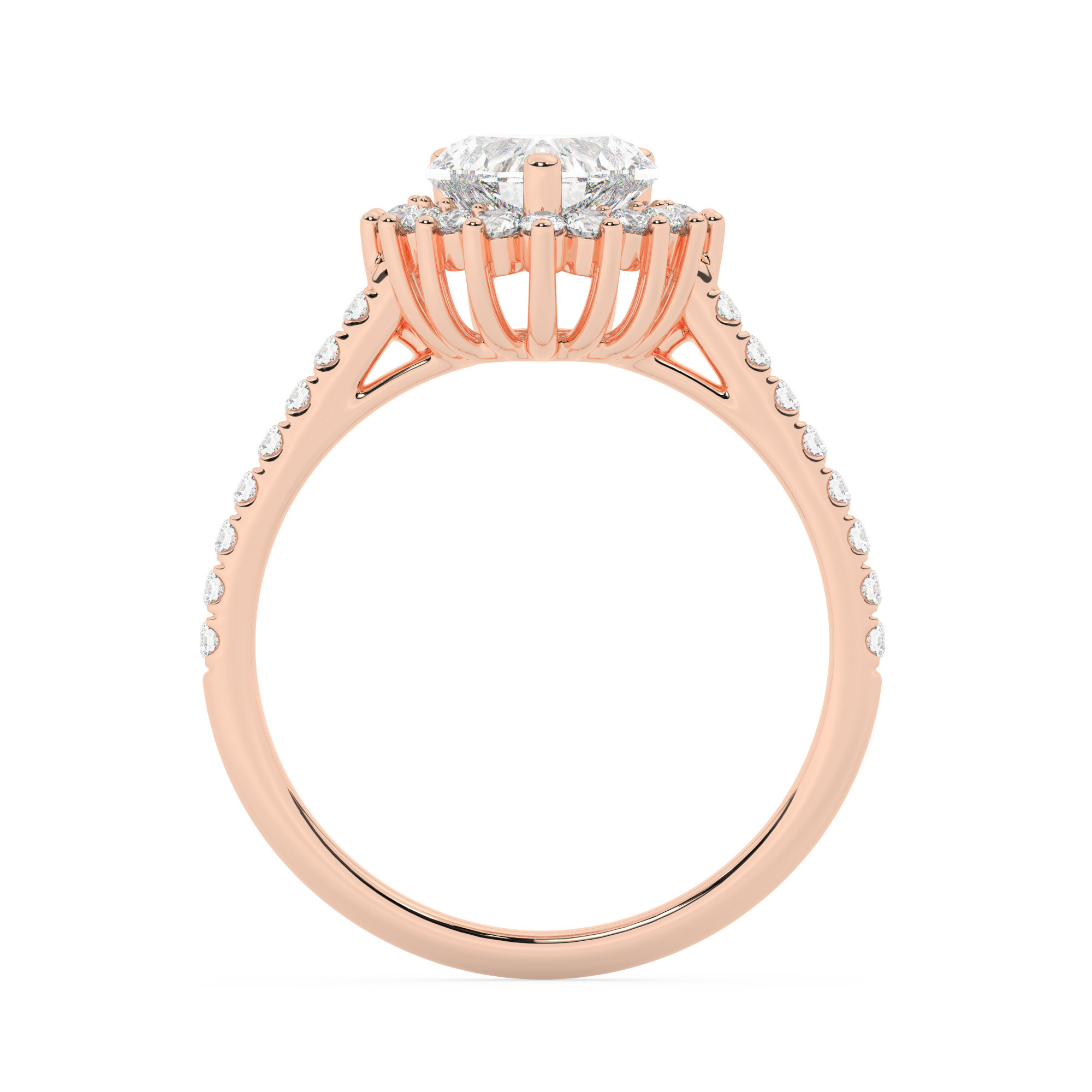 טבעת אירוסין היילו דגם 50024 זהב אדום רוזגולד 14 קראט במרכז זירקוניה 2 קראט בחיתוך לב מסביב ובצדדים זירקונים בחיתוך עגול