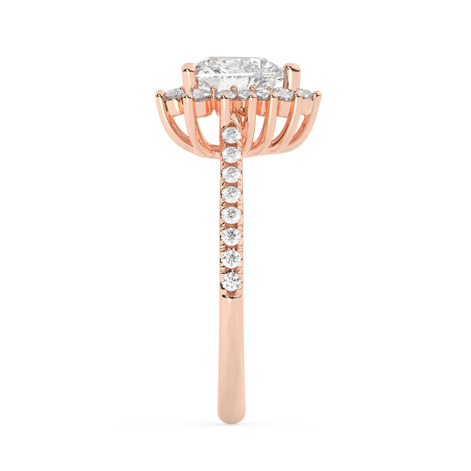 טבעת זירקונים – טבעת אירוסין היילו בזוהר של זהב אדום רוזגולד