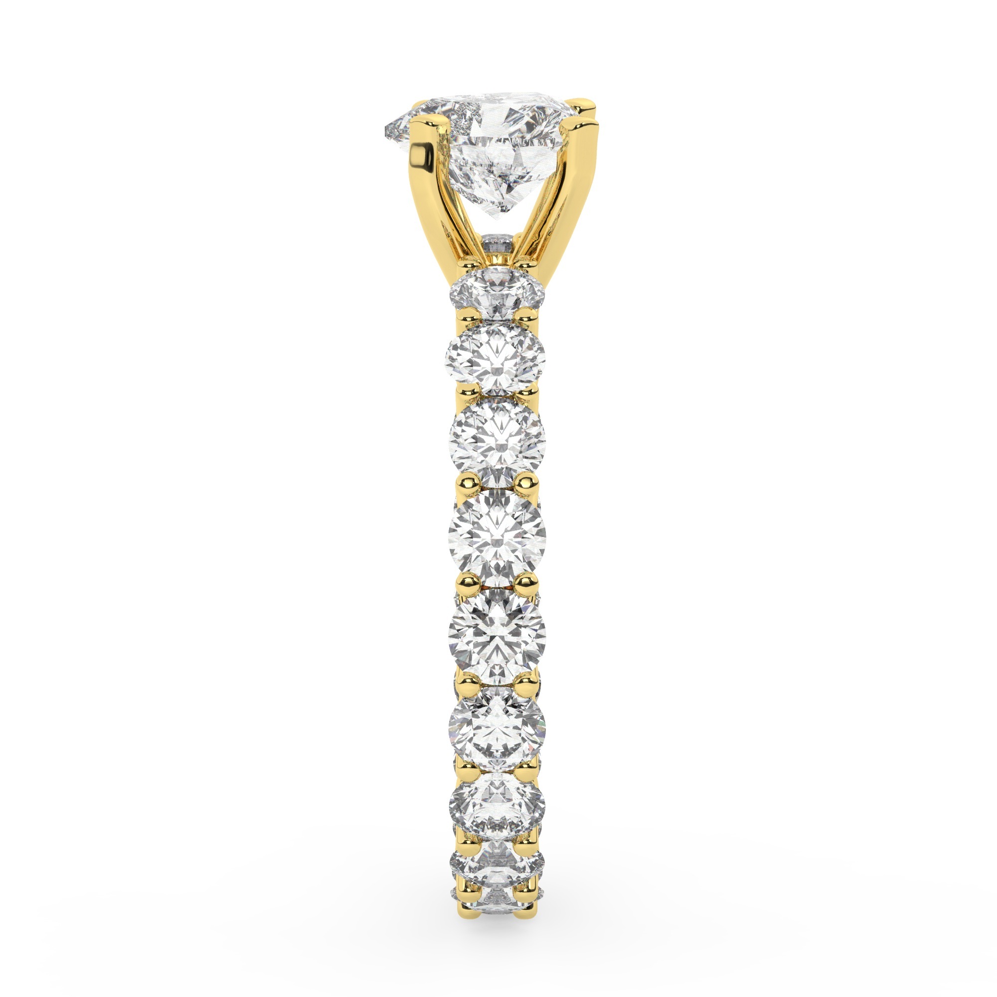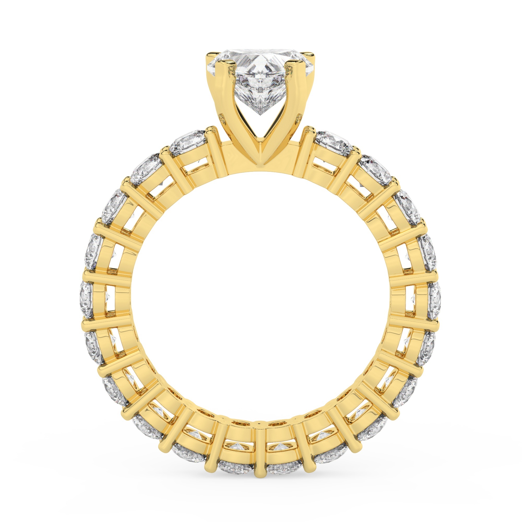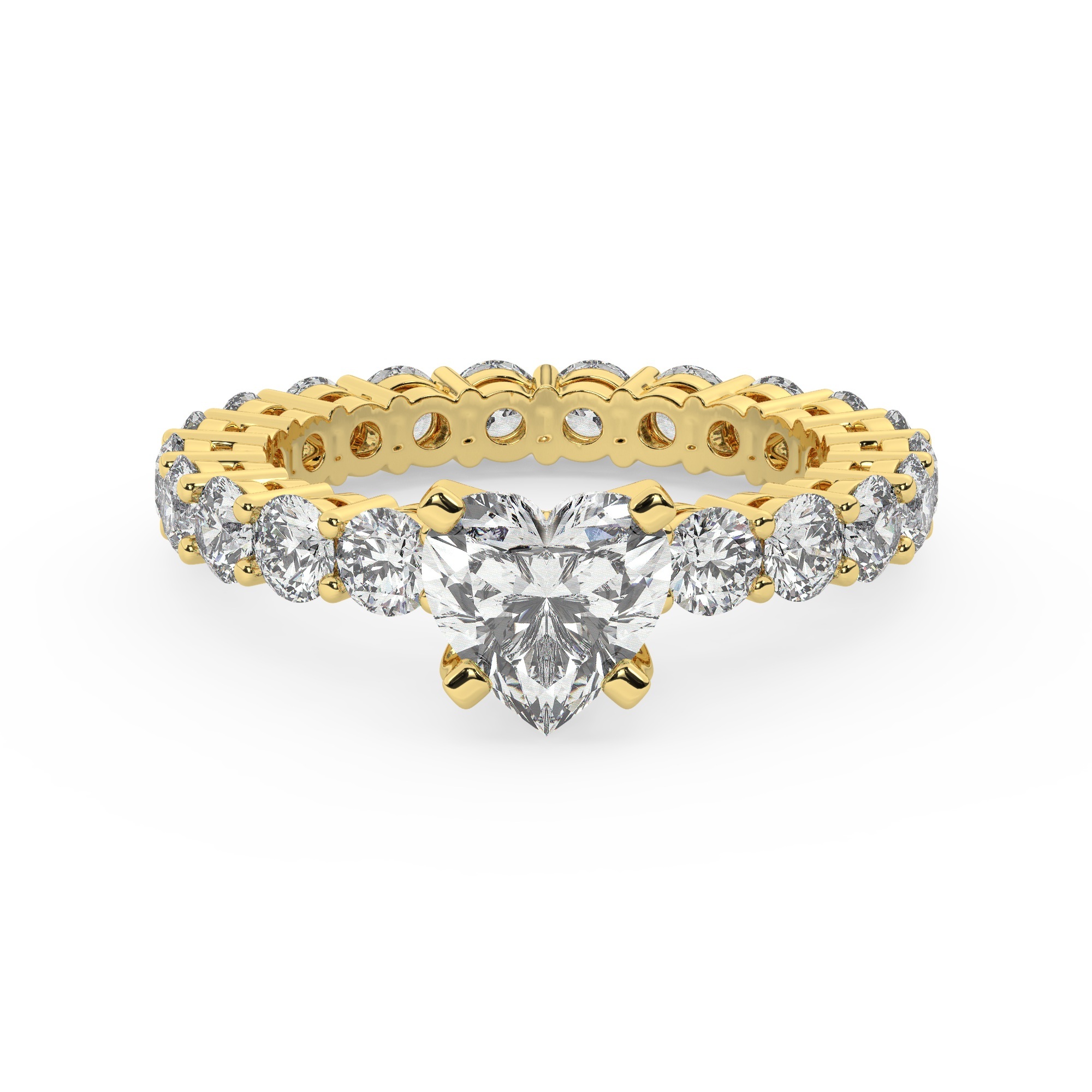 טבעת אירוסין סוליטר וזירקונים בצדדים איטרנטיני דגם 50044 כסף מצופה זהב צהוב במרכז זירקוניה 2 קראט בחיתוך לב מסביב ובצדדים זירקונים בחיתוך עגול