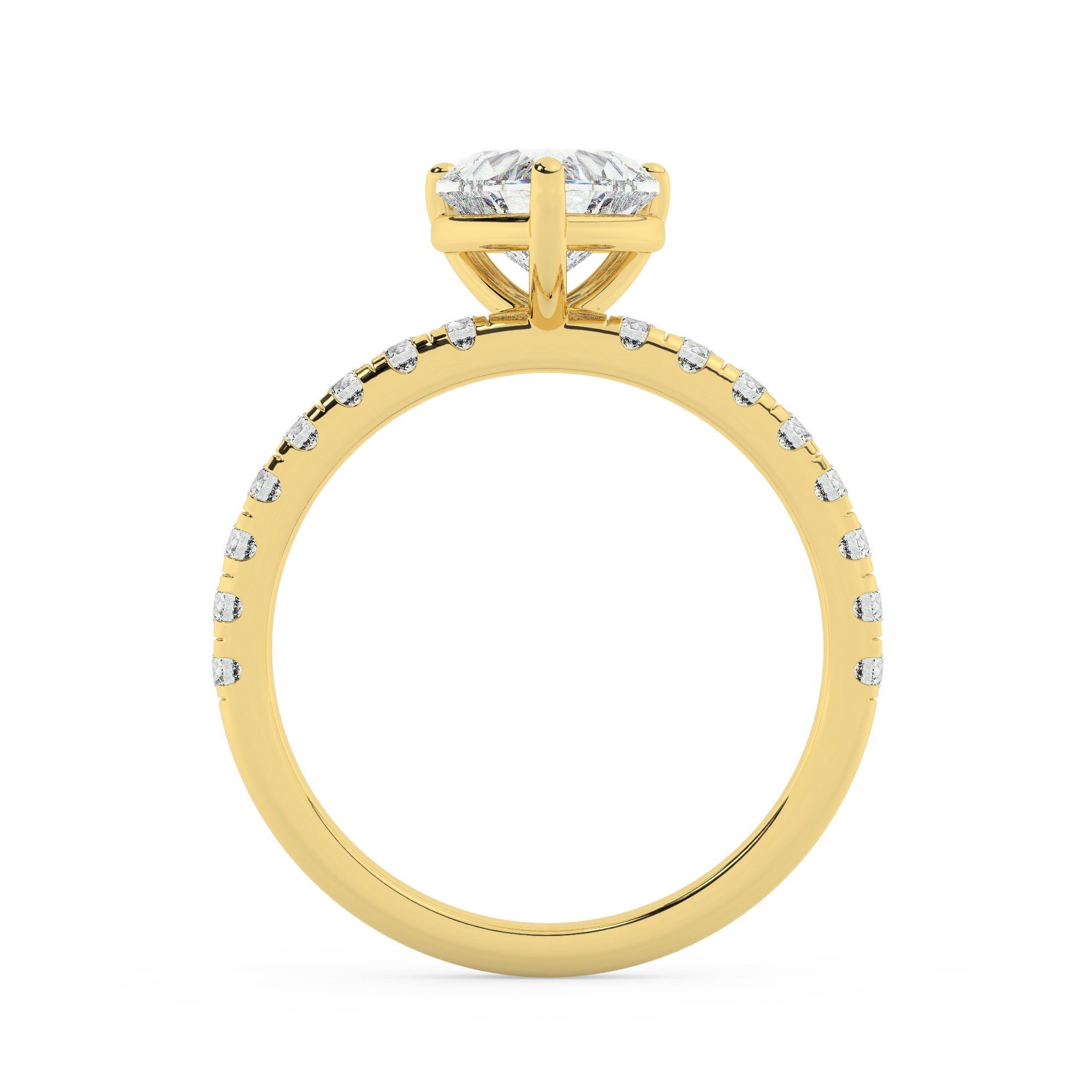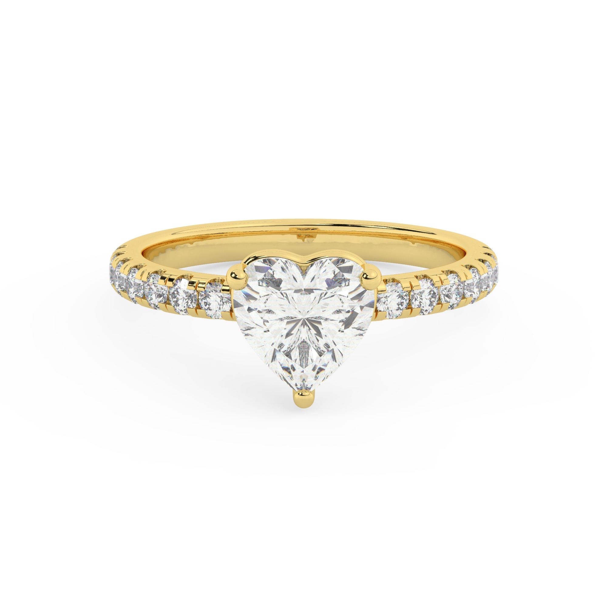 טבעת אירוסין סוליטר וזירקונים בצדדים דגם 50037 זהב צהוב 14 קראט במרכז זירקוניה 2.50 קראט בחיתוך לב מסביב ובצדדים זירקונים בחיתוך עגול
