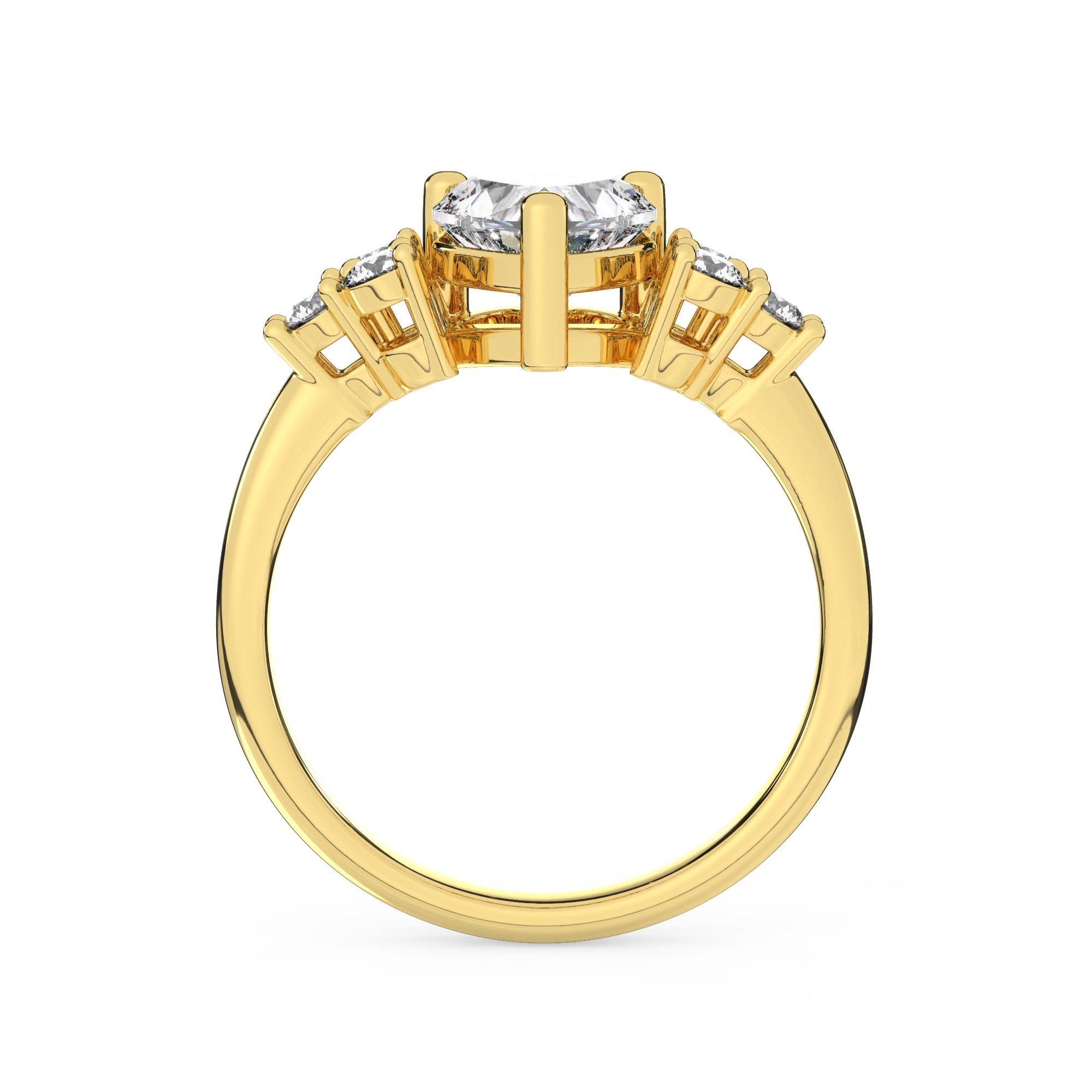 טבעת אירוסין סוליטר וזירקונים בצדדים דגם 50041 זהב צהוב 14 קראט במרכז זירקוניה 2.50 קראט בחיתוך לב מסביב ובצדדים זירקונים בחיתוך עגול