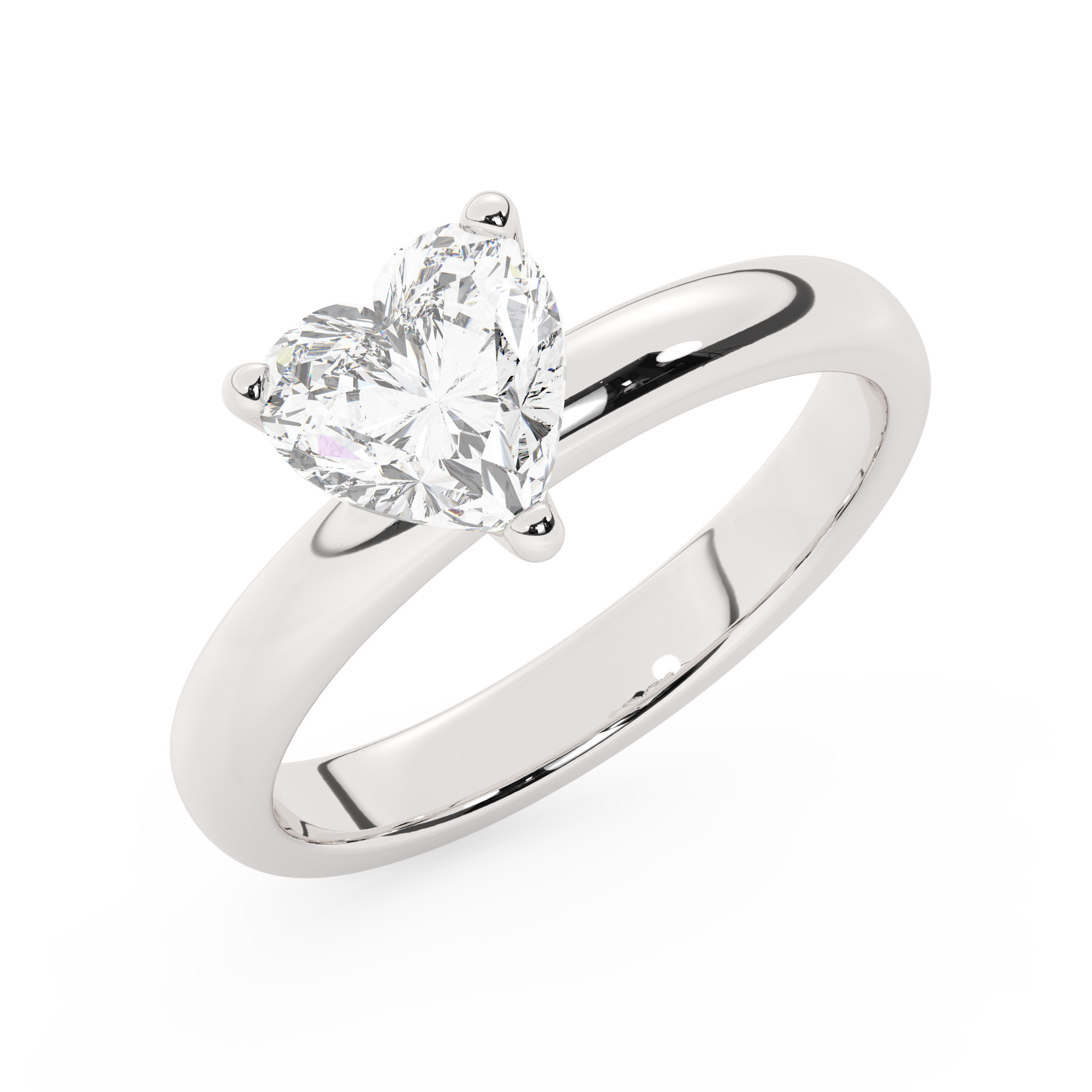 טבעת אירוסין סוליטר דגם 50047 כסף מצופה זהב לבן במרכז זירקוניה במשקל כולל של 3 קראט בחיתוך לב עם תעודה גמולוגית