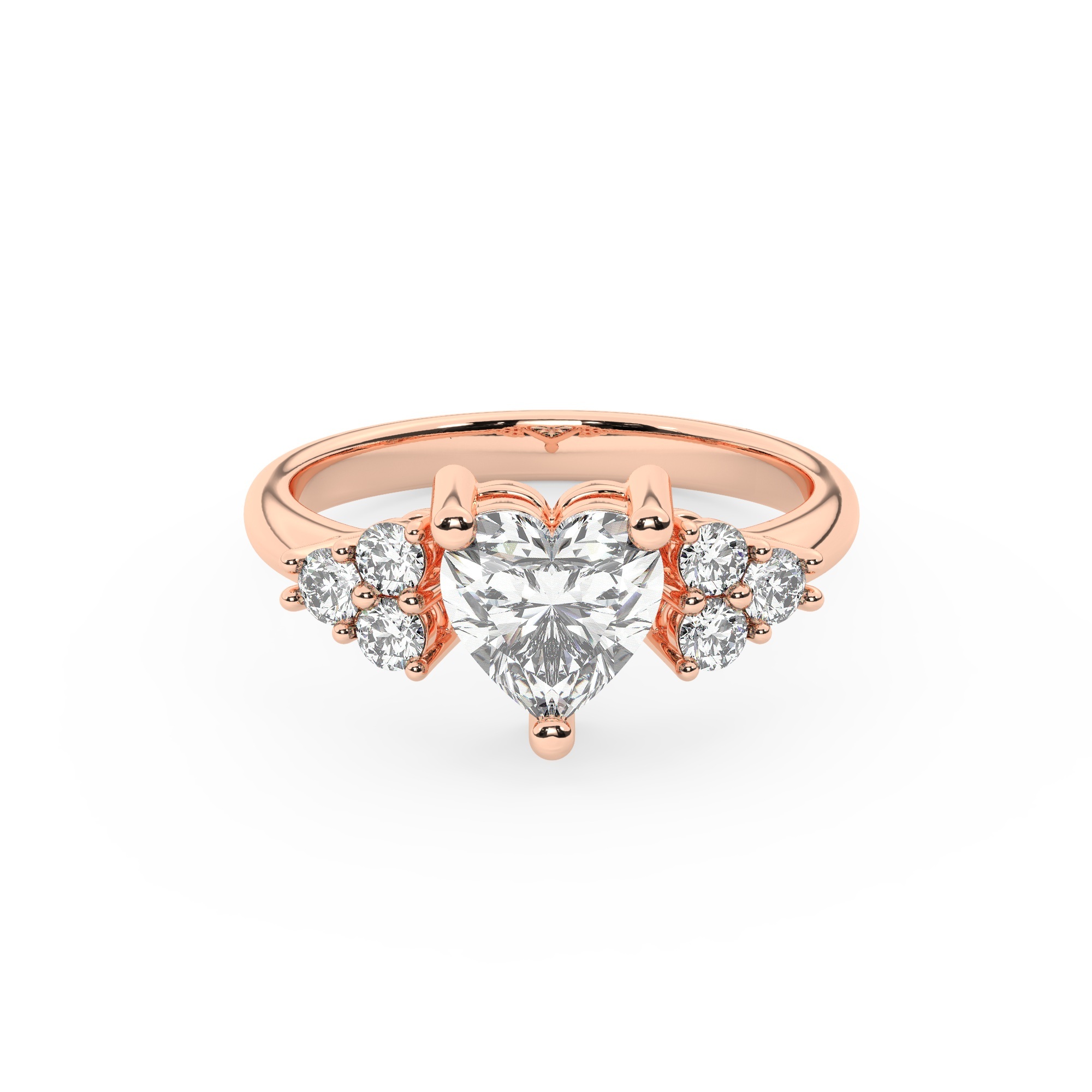 טבעת אירוסין סוליטר וזירקונים בצדדים דגם 50041 זהב אדום רוזגולד 14 קראט במרכז זירקוניה 4 קראט בחיתוך לב מסביב ובצדדים זירקונים בחיתוך עגול