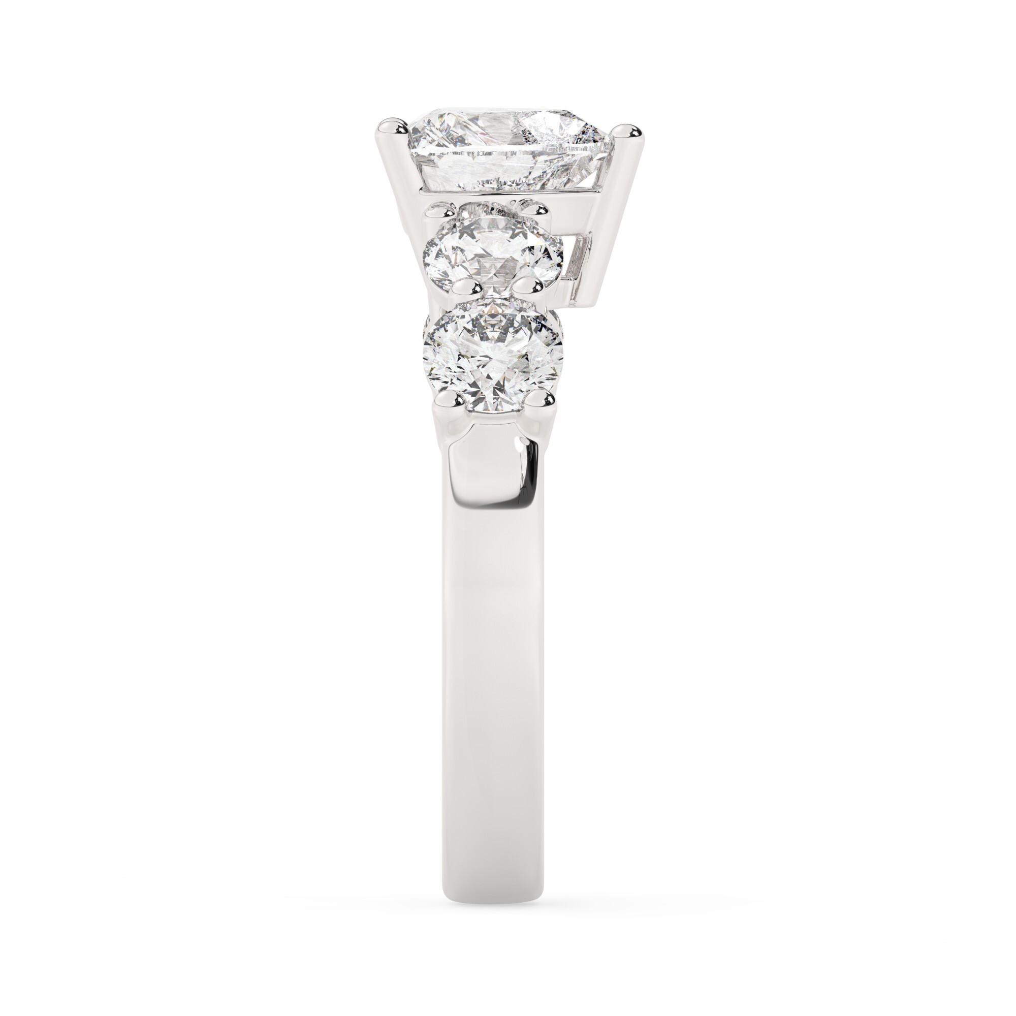 עם 4 אבנים עגולות לצידיה, כל אחת מהן במשקל 1.08 קראט, הטבעת שואבת את המבט ויוצרת מראה עשיר ומרשים. האבנים הנוספות גם הן זירקוניה, עם צבע דומה ونיקיון VVS1, שמוודאות שהברק של הטבעת לא רק משמר תכונות יוקרתיות אלא גם מוסיף למראה הכללי עדינות ואהבה.