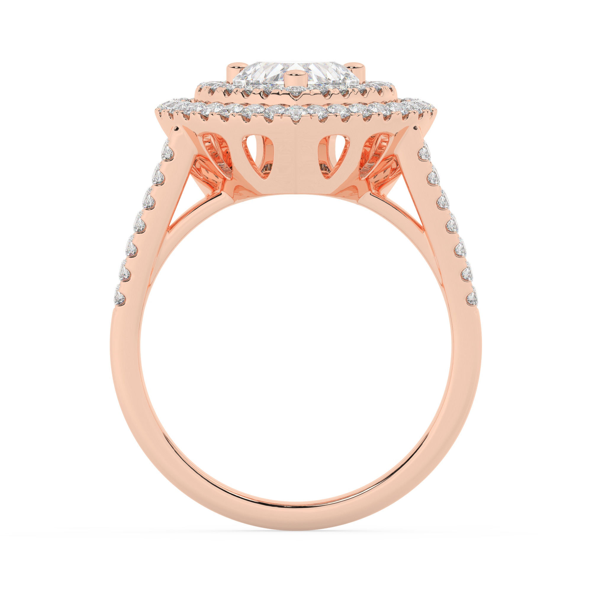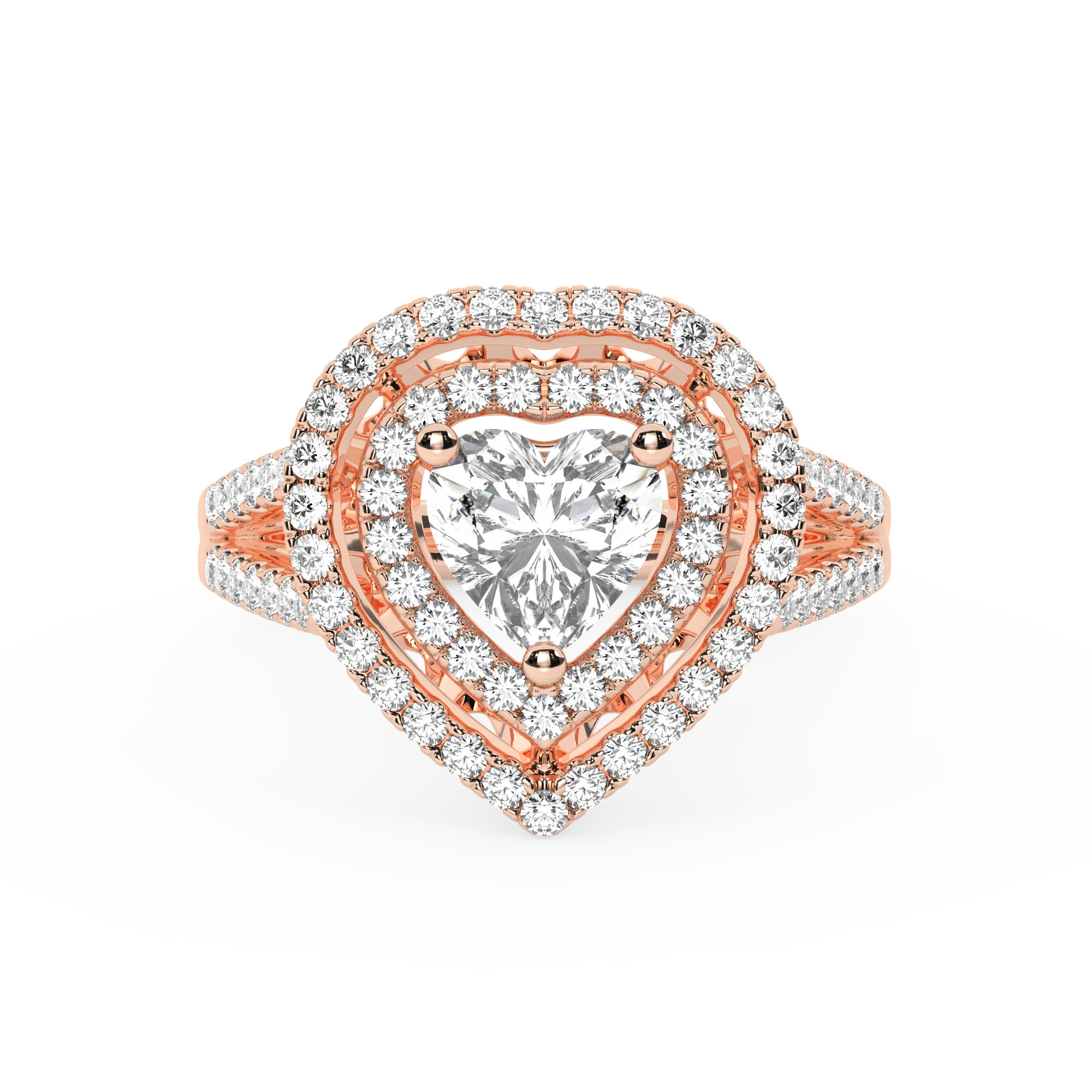 טבעת אירוסין היילו דגם 50025 כסף מצופה זהב אדום רוזגולד במרכז זירקוניה 5 קראט בחיתוך לב מסביב ובצדדים זירקונים בחיתוך עגול