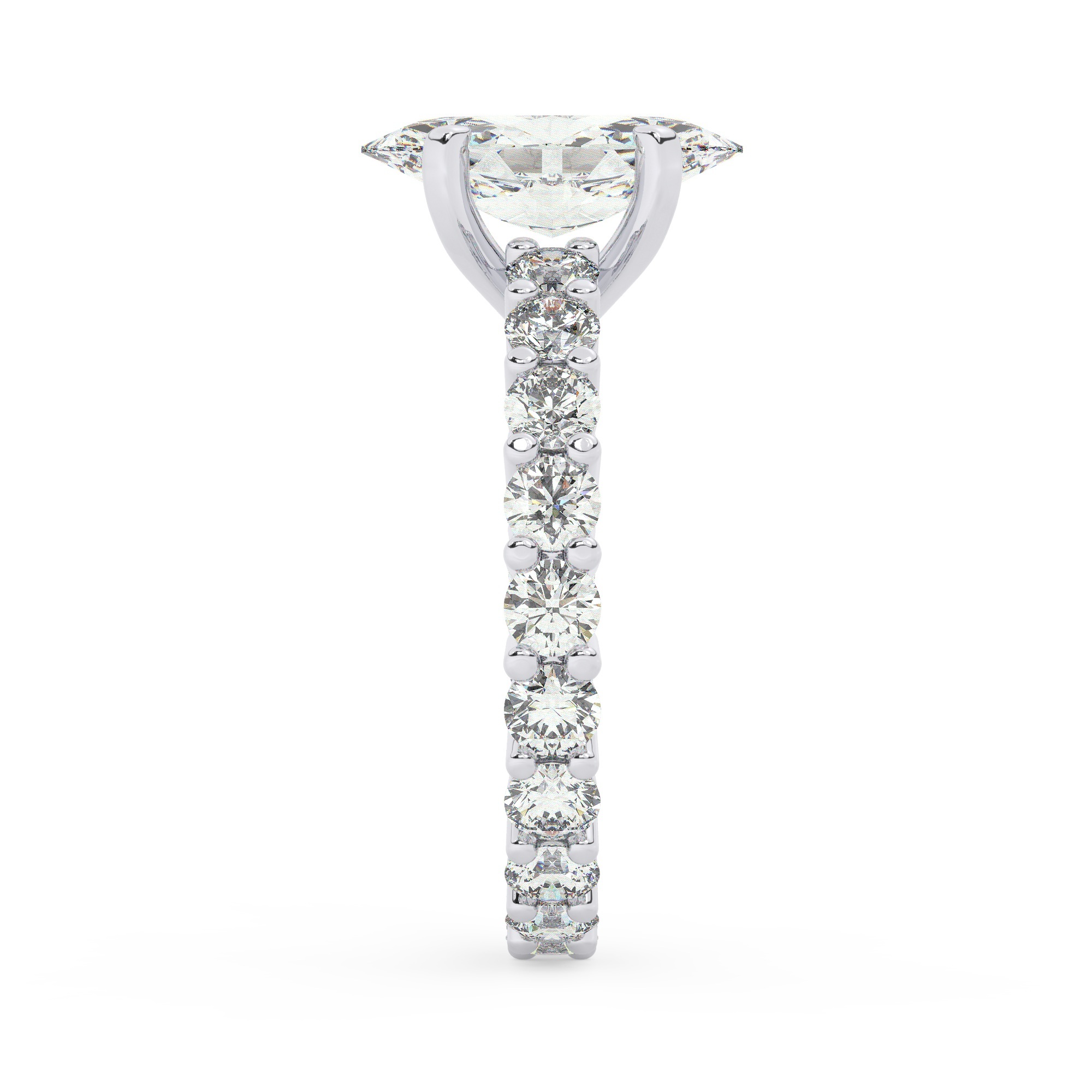 במרכז זירקוניה בגודל של 0.75 קראט בחיתוך מרקיזה עם תעודה גמולוגית.