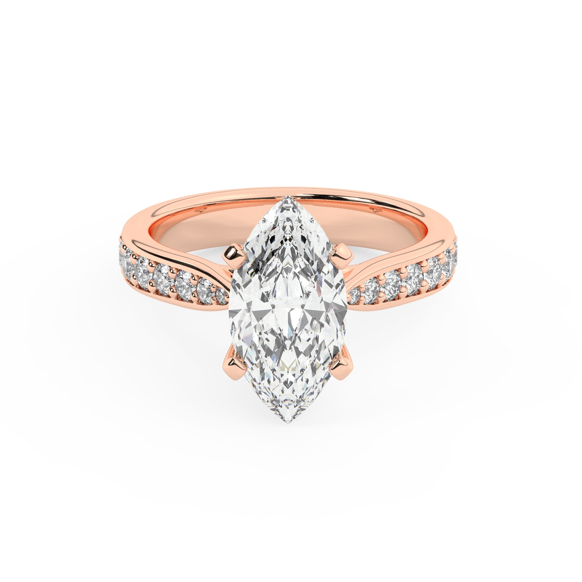 טבעת אירוסין סוליטר וזירקונים בצדדים דגם 50017 כסף מצופה זהב אדום רוזגולד במרכז זירקוניה 0.75 קראט בחיתוך מרקיזה מסביב ובצדדים זירקונים בחיתוך עגול