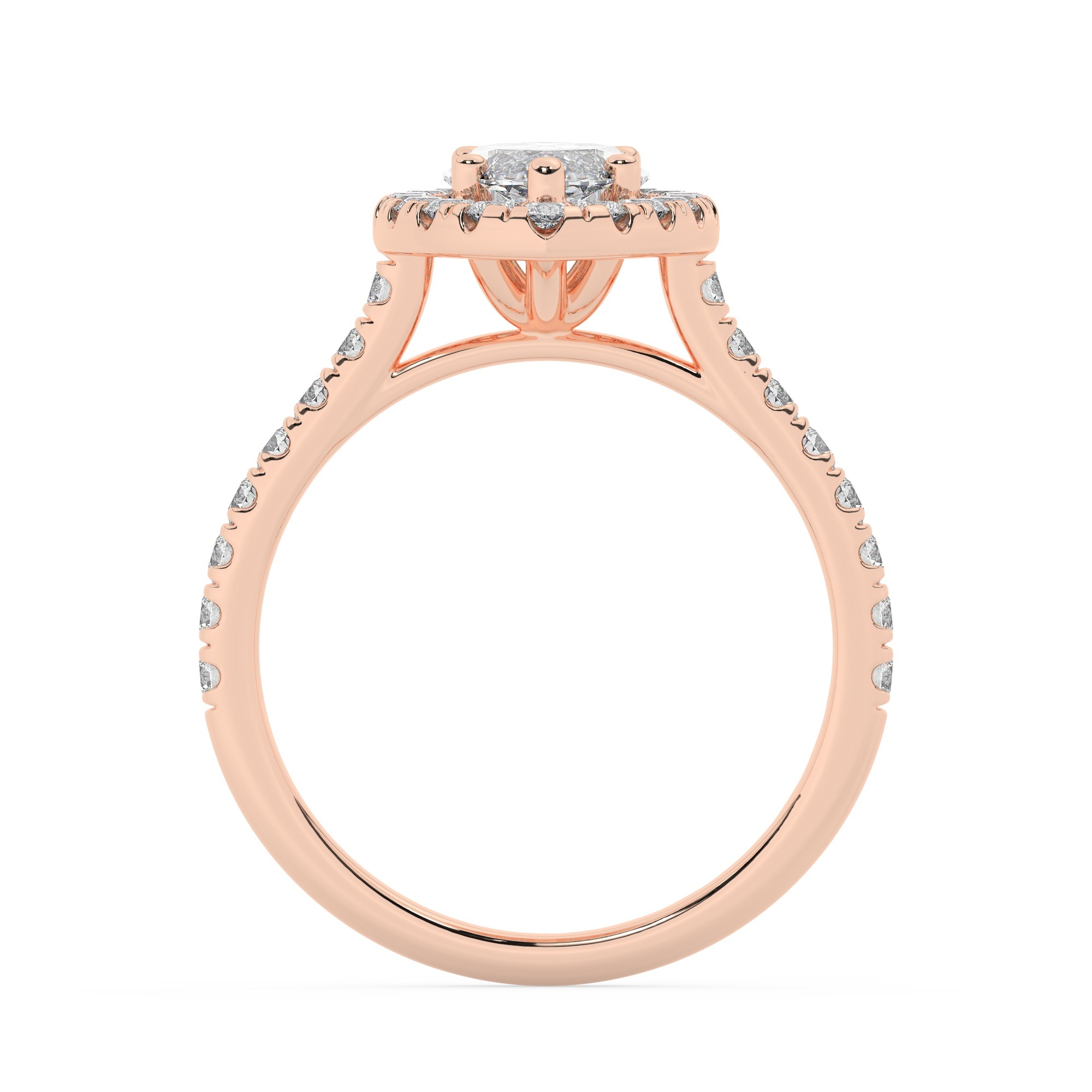 טבעת אירוסין היילו דגם 50026 זהב אדום רוזגולד 14 קראט במרכז זירקוניה 1.50 קראט בחיתוך מרקיזה מסביב ובצדדים זירקונים בחיתוך עגול