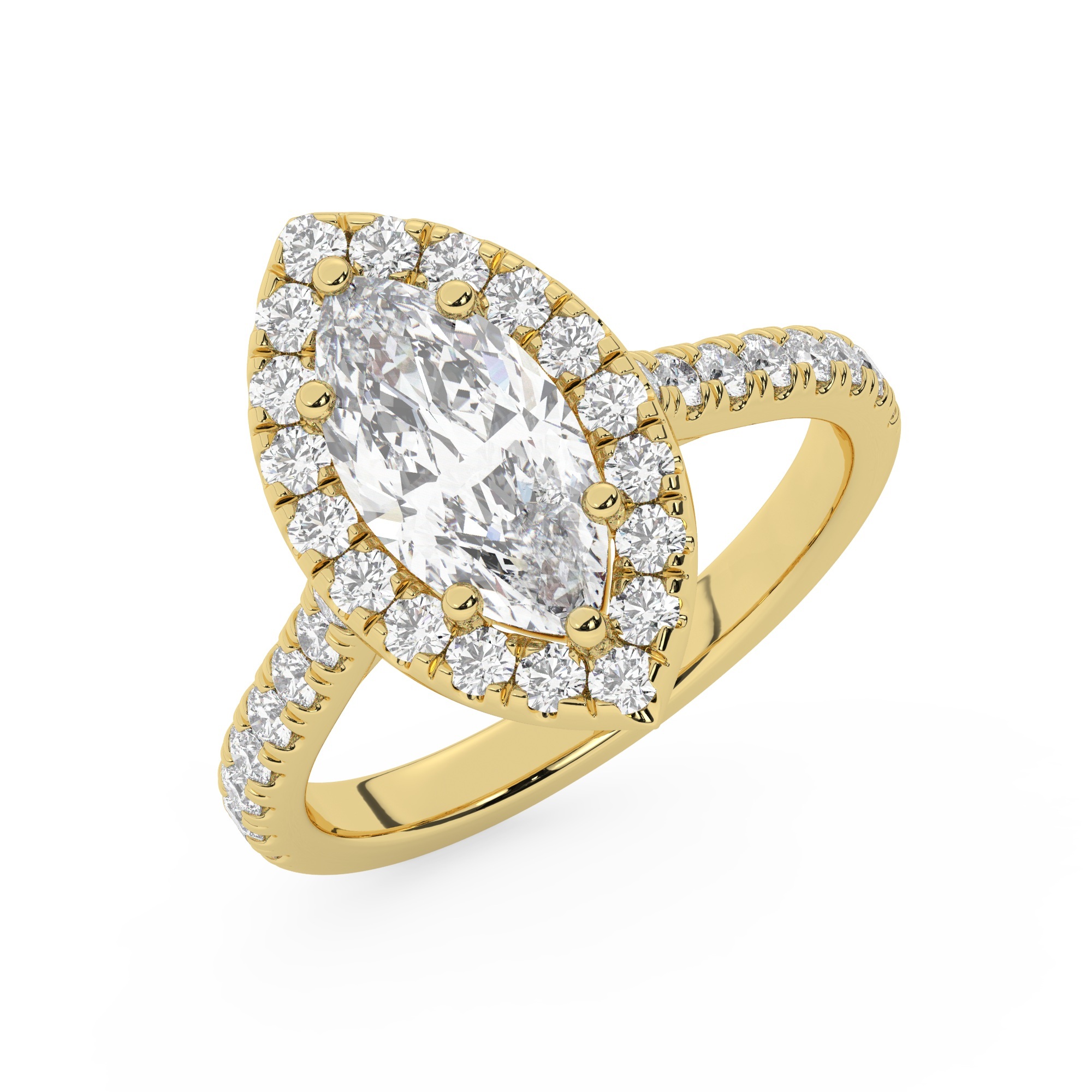 טבעת אירוסין היילו דגם 50026 זהב צהוב 14 קראט במרכז זירקוניה 1.50 קראט בחיתוך מרקיזה מסביב ובצדדים זירקונים בחיתוך עגול