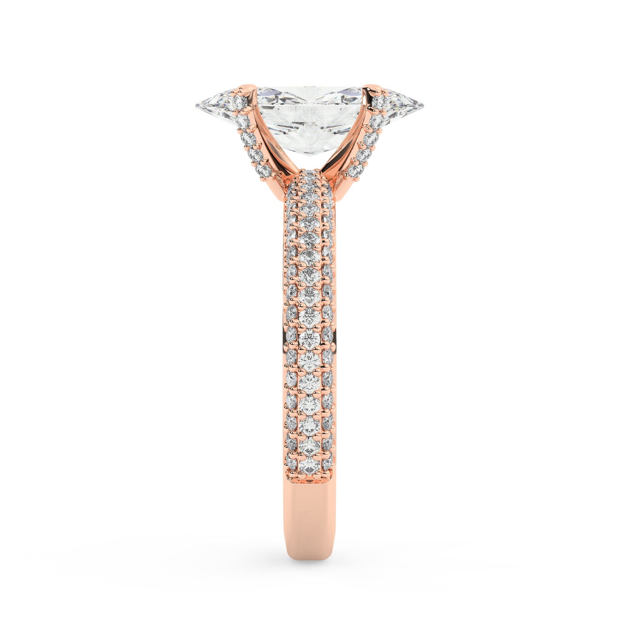 טבעת אירוסין סוליטר ויהלומים בצדדים דגם 50012 זהב אדום רוזגולד 14 קראט במרכז זירקוניה 2 קראט בחיתוך מרקיזה מסביב ובצדדים זירקונים בחיתוך עגול