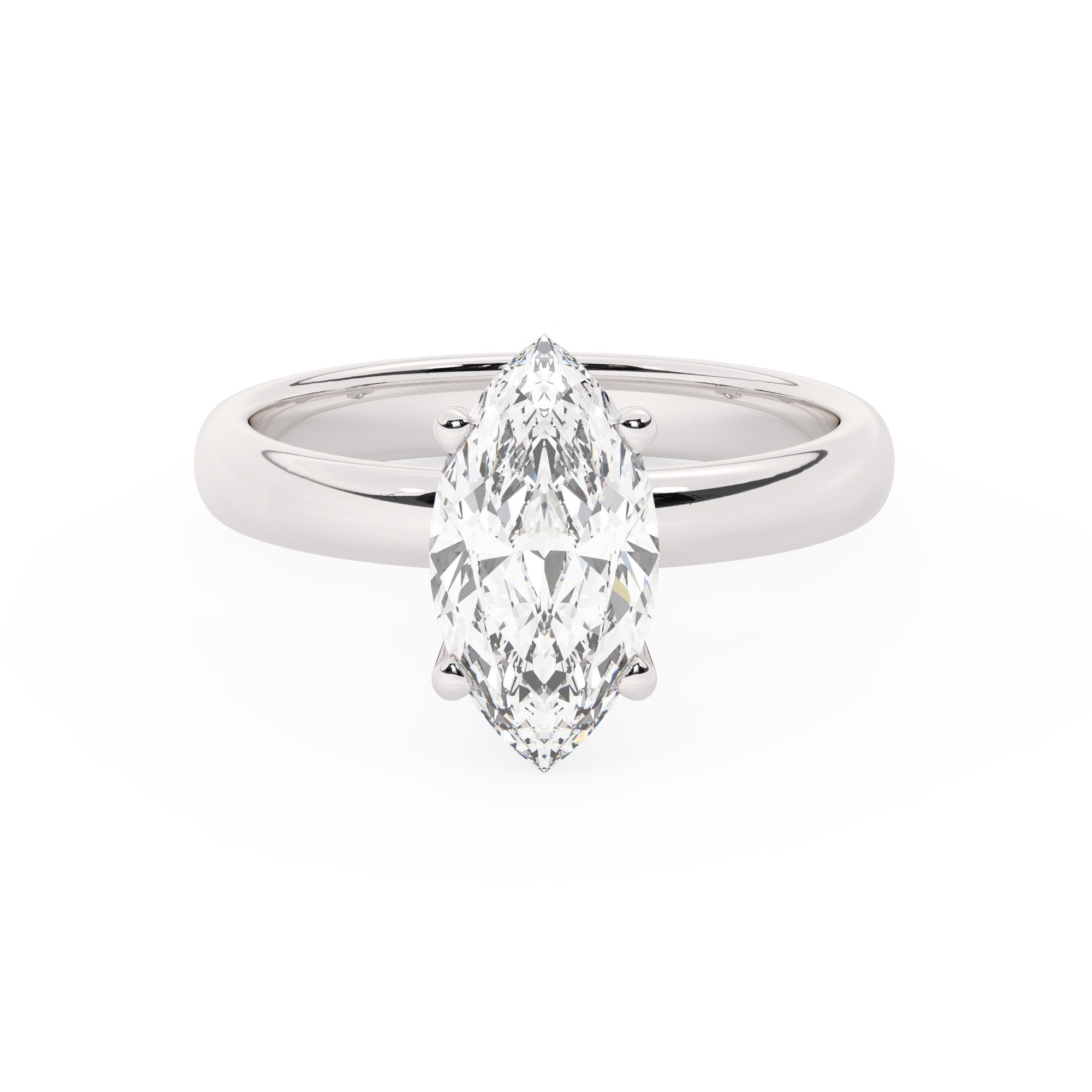 טבעת אירוסין סוליטר דגם 50047 זהב לבן 14 קראט במרכז זירקוניה במשקל כולל של 2 קראט בחיתוך מרקיזה עם תעודה גמולוגית