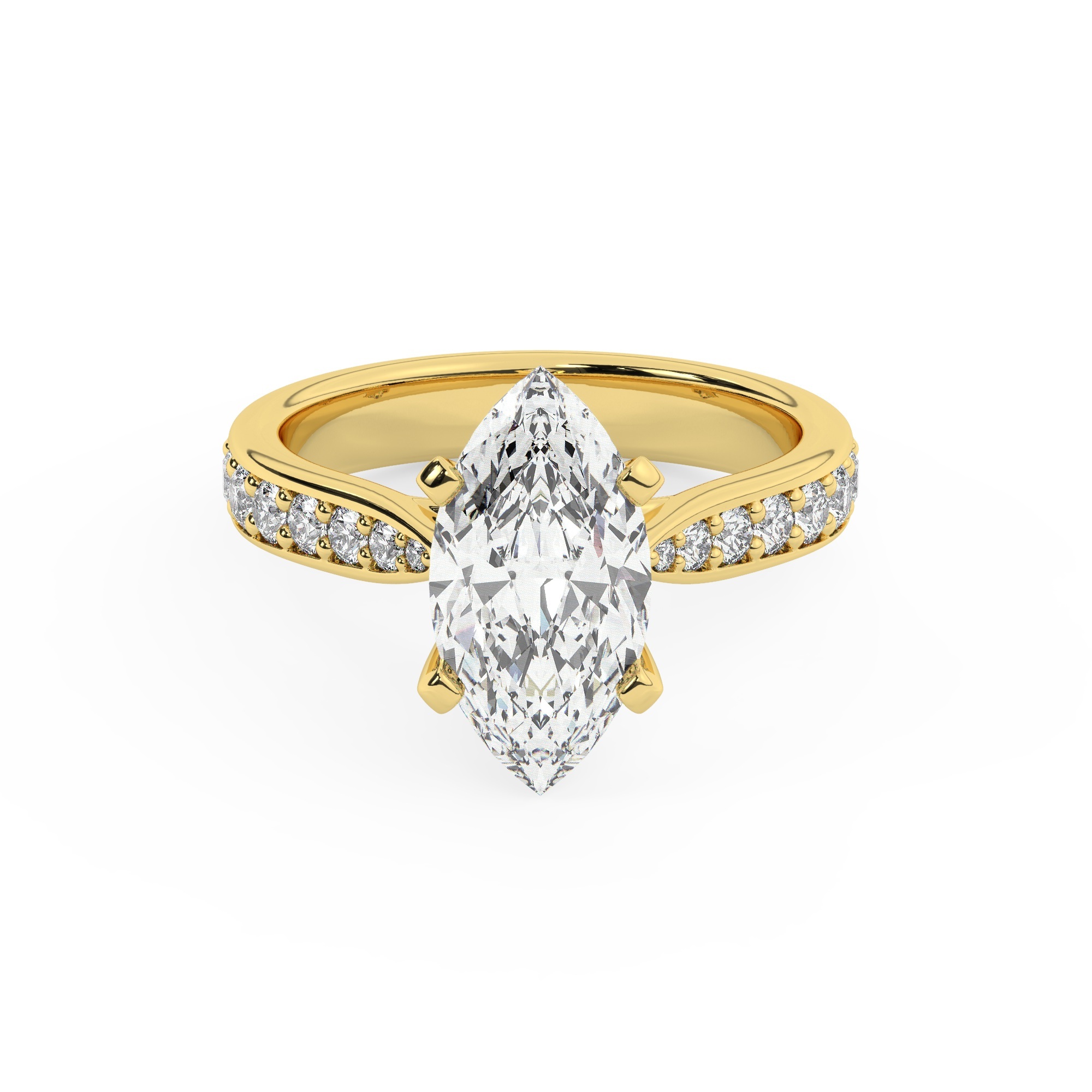 טבעת אירוסין סוליטר וזירקונים בצדדים דגם 50017 כסף מצופה זהב צהוב במרכז זירקוניה 2 קראט בחיתוך מרקיזה מסביב ובצדדים זירקונים בחיתוך עגול