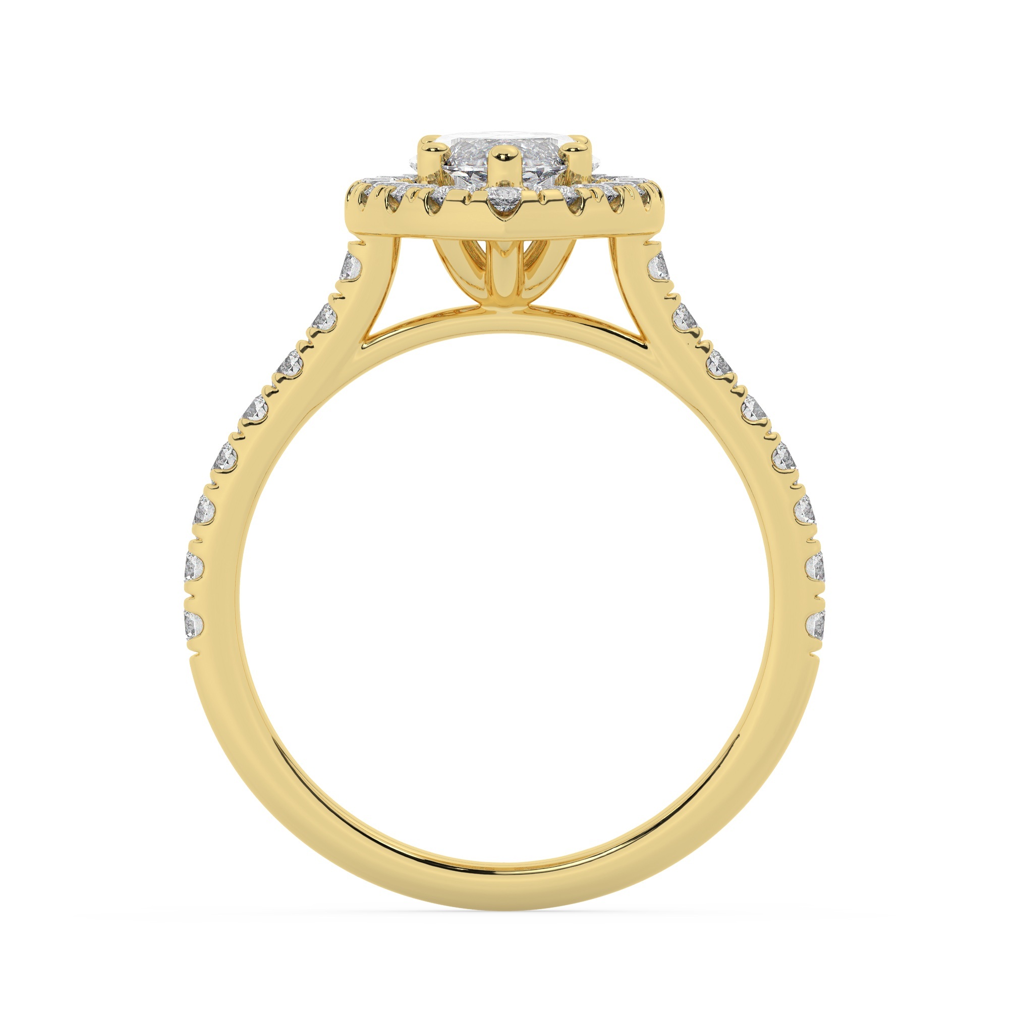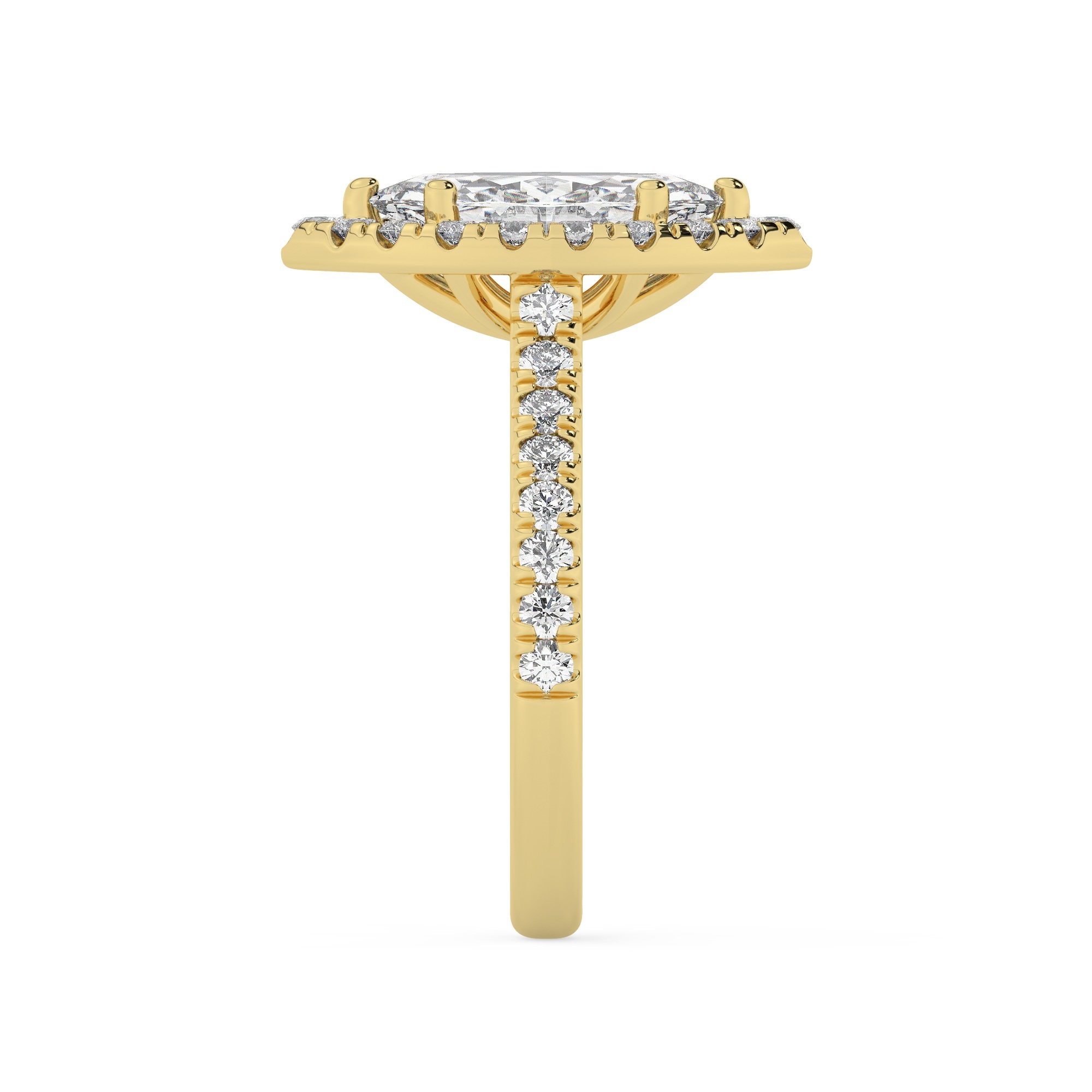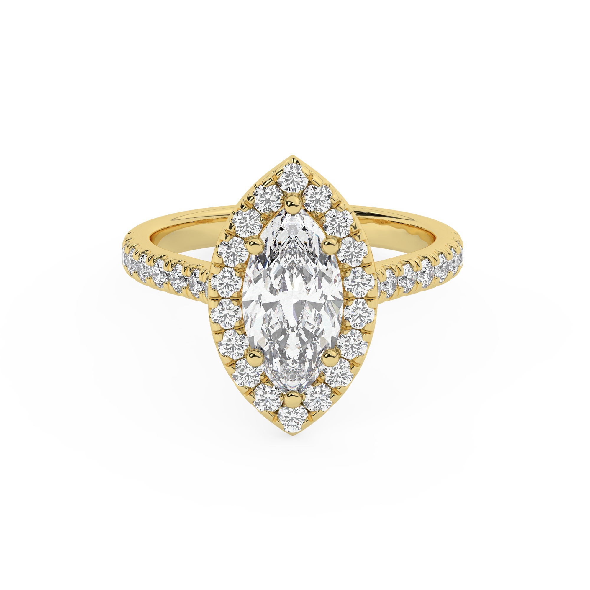 טבעת אירוסין היילו דגם 50026 זהב צהוב 14 קראט במרכז זירקוניה 2.50 קראט בחיתוך מרקיזה מסביב ובצדדים זירקונים בחיתוך עגול