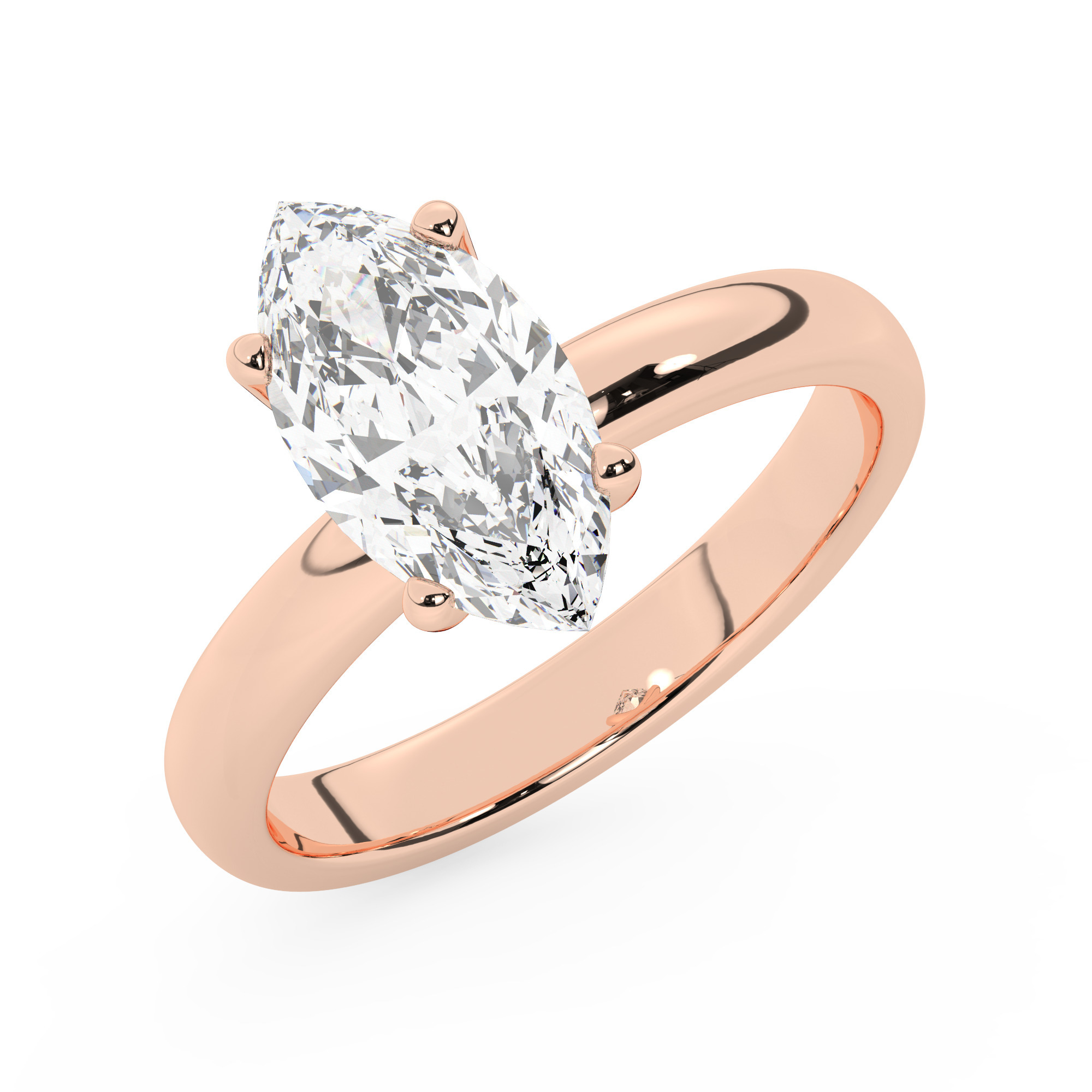 טבעת אירוסין סוליטר דגם 50047 זהב אדום רוזגולד 14 קראט במרכז זירקוניה במשקל כולל של 3 קראט בחיתוך מרקיזה עם תעודה גמולוגית