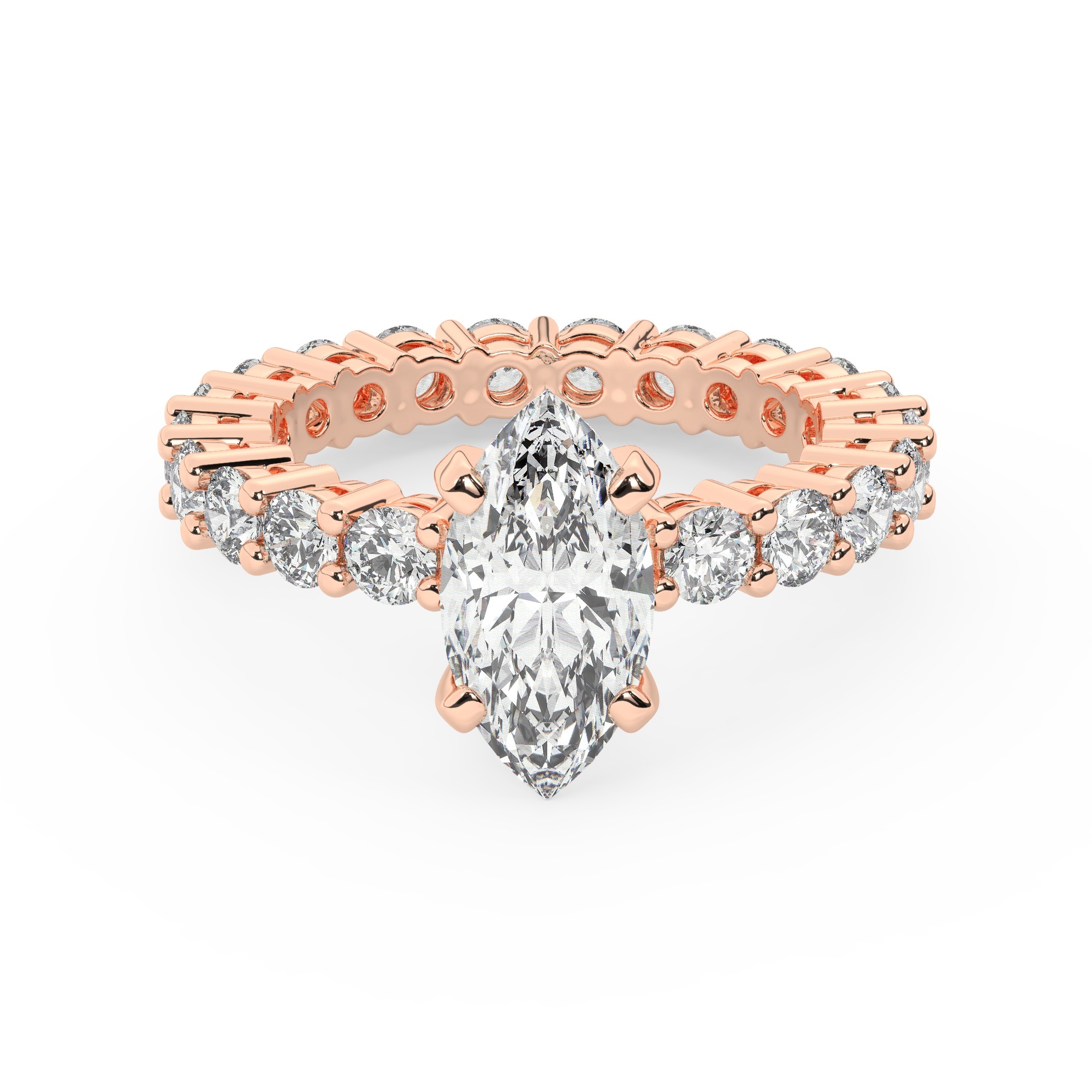 טבעת אירוסין סוליטר וזירקונים בצדדים איטרנטיני דגם 50044 זהב אדום רוזגולד 14 קראט במרכז זירקוניה 4 קראט בחיתוך מרקיזה מסביב ובצדדים זירקונים בחיתוך עגול