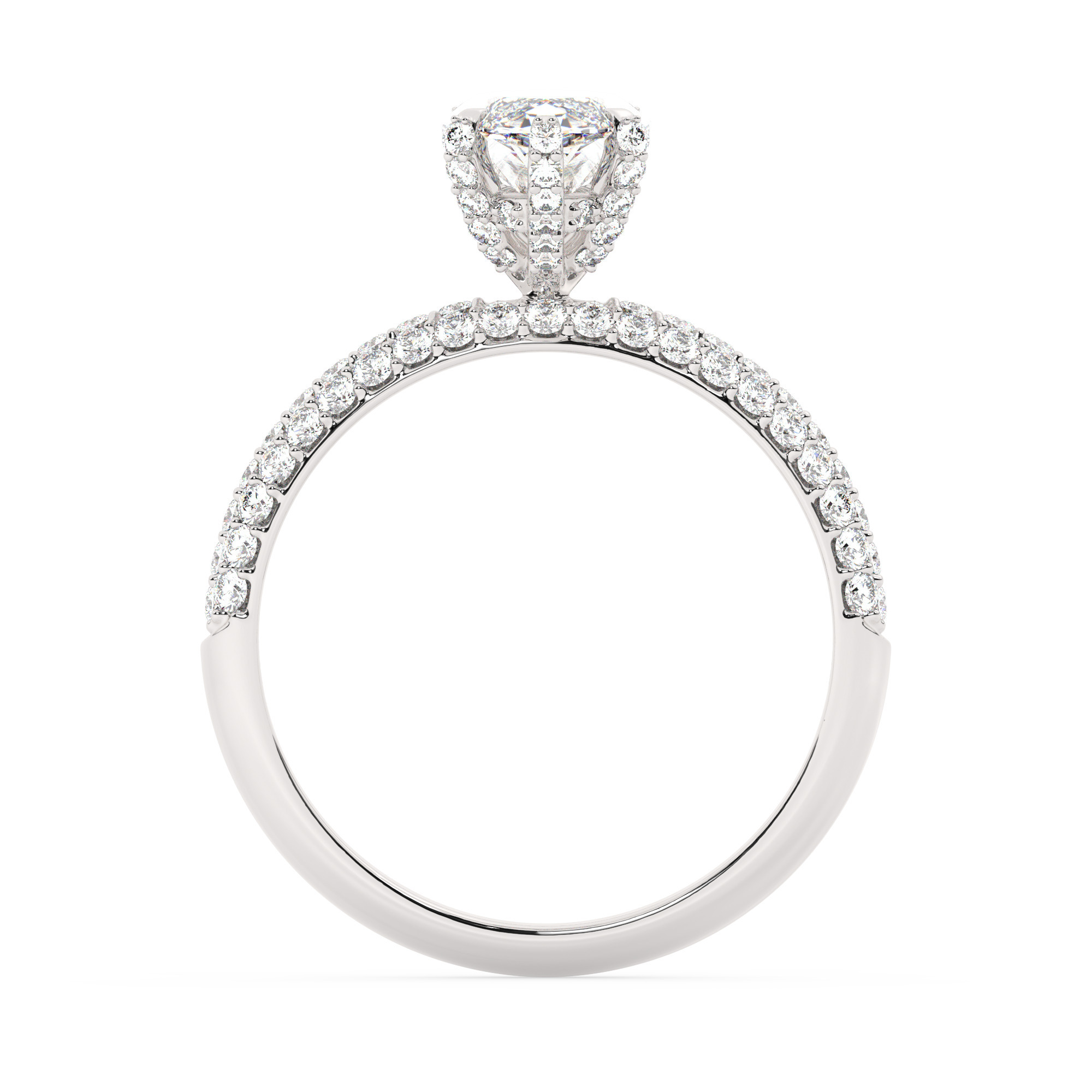 מסביב משובצים 100 זירקונים בחיתוך עגול במשקל כולל של 0.50 קרט.