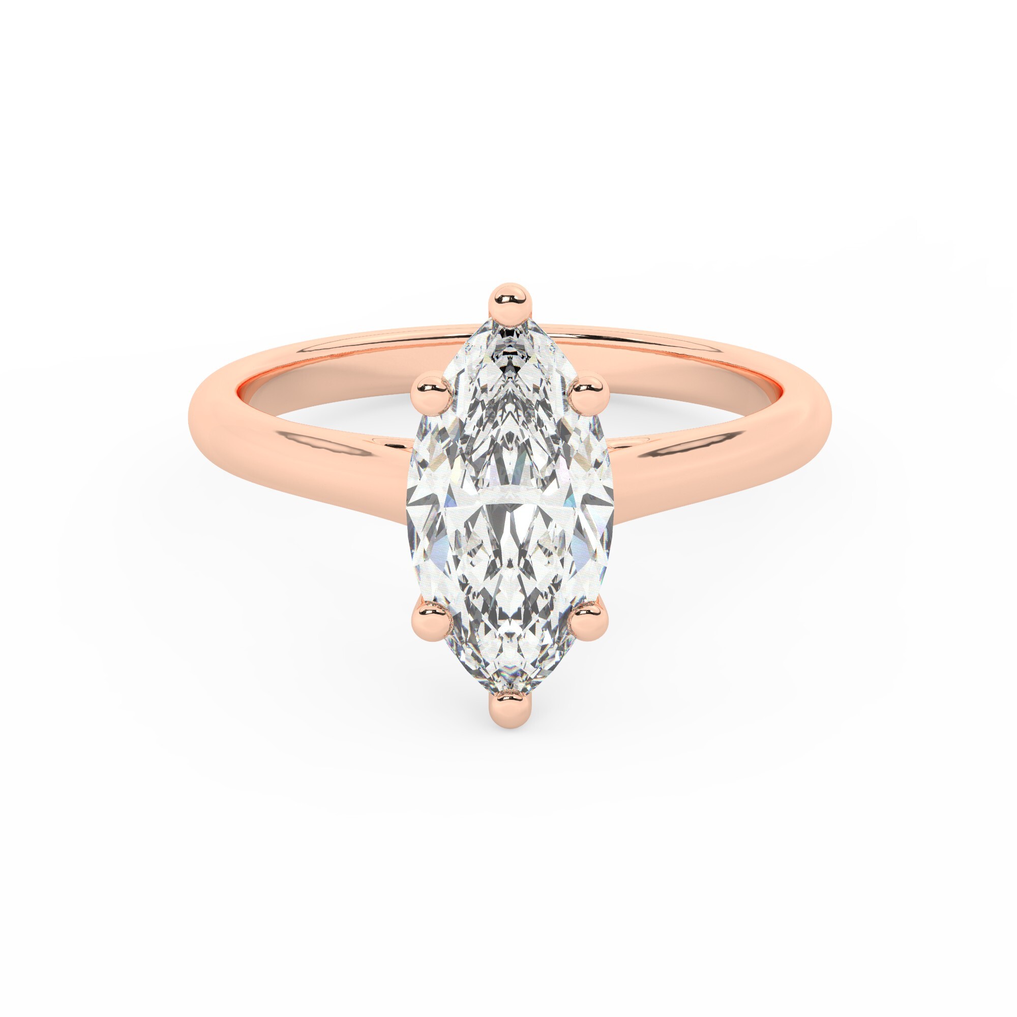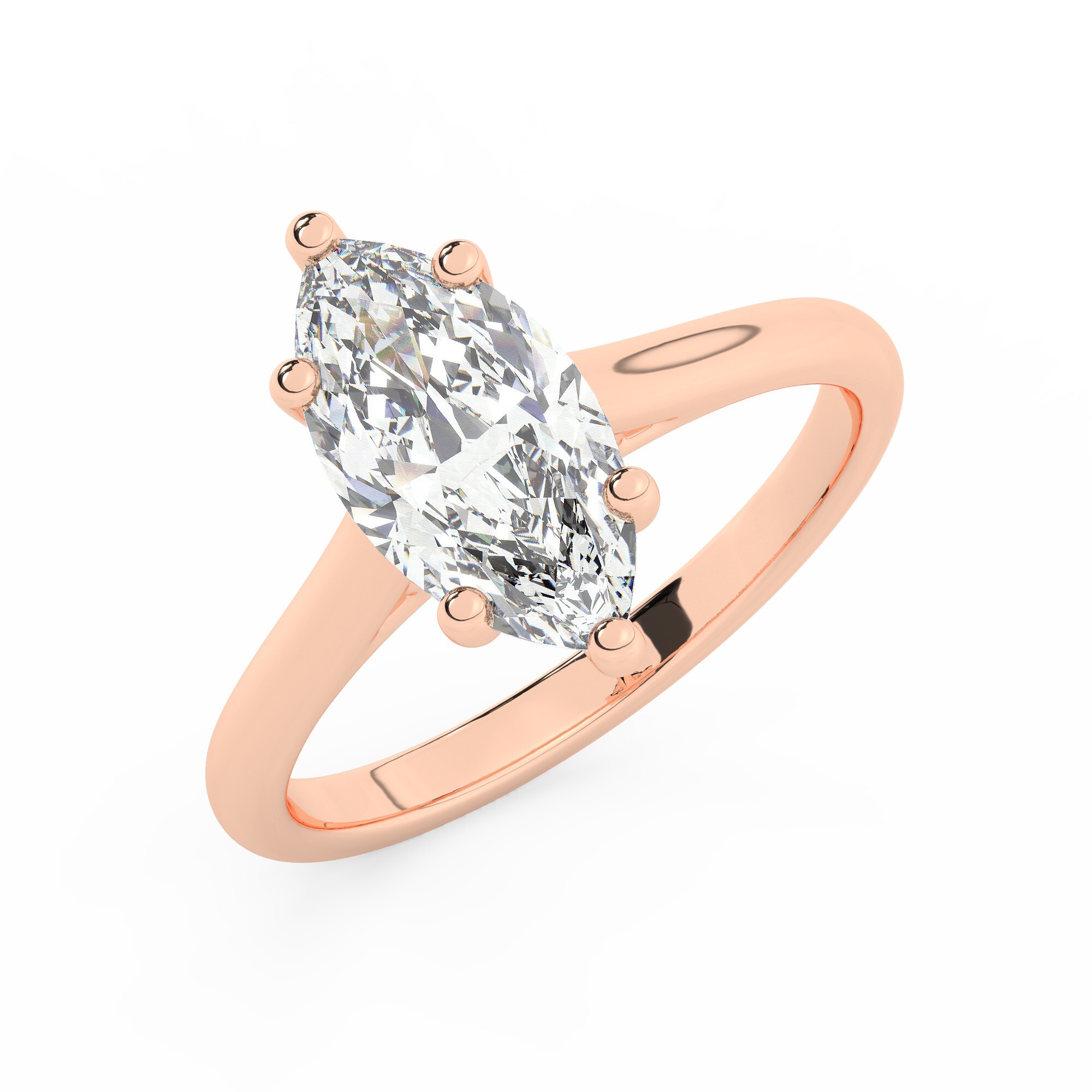 טבעת אירוסין סוליטר דגם 50029 זהב אדום רוזגולד 14 קראט במרכז זירקוניה במשקל כולל של 5 קראט בחיתוך מרקיזה עם תעודה גמולוגית