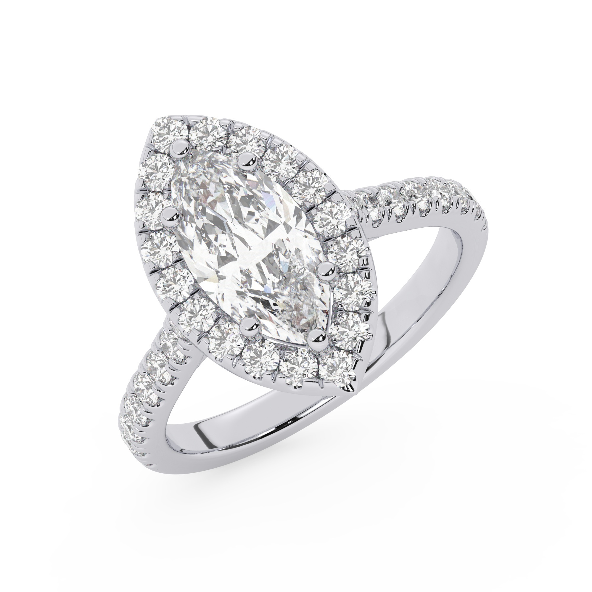 טבעת אירוסין היילו דגם 50026 כסף מצופה זהב לבן במרכז זירקוניה 5 קראט בחיתוך מרקיזה מסביב ובצדדים זירקונים בחיתוך עגול