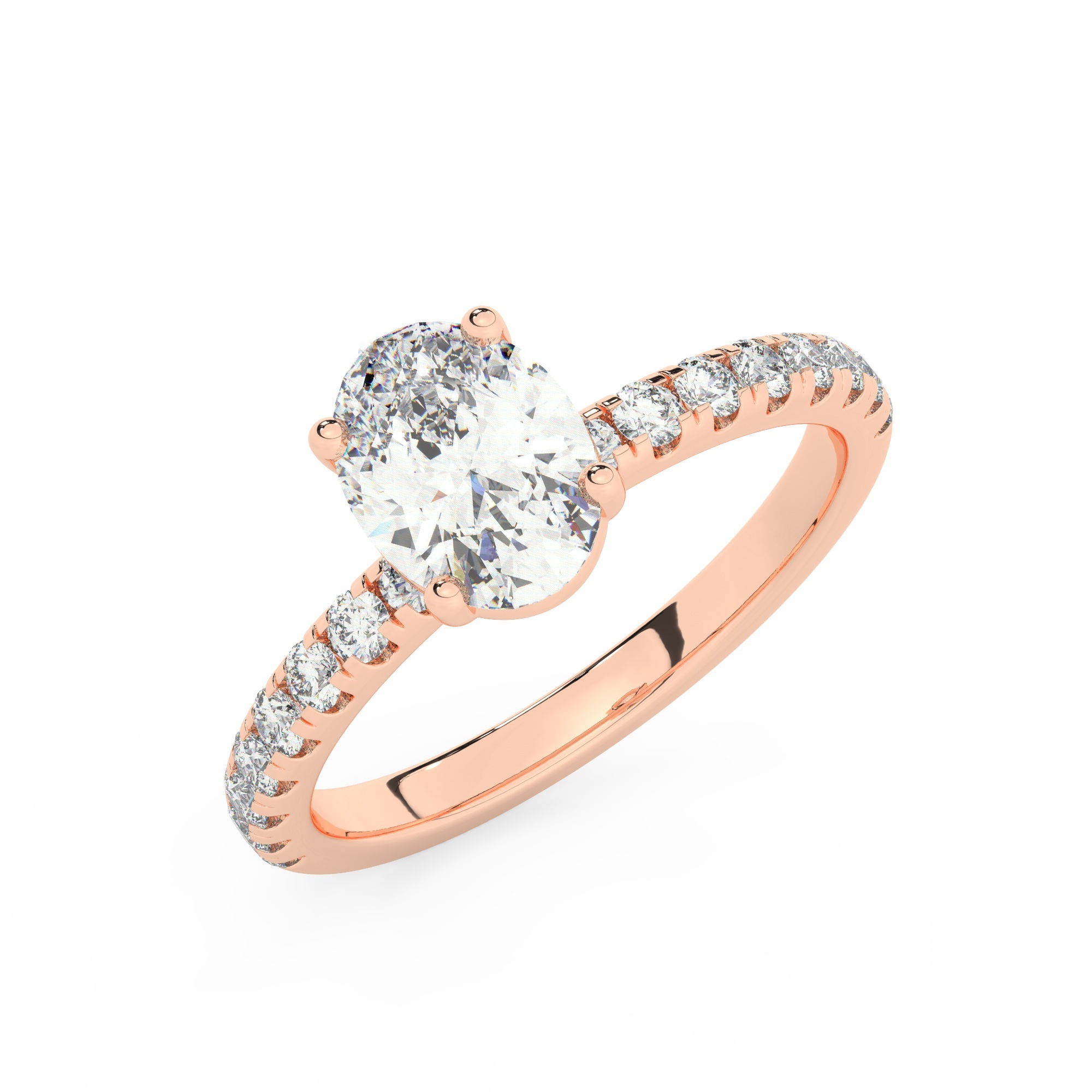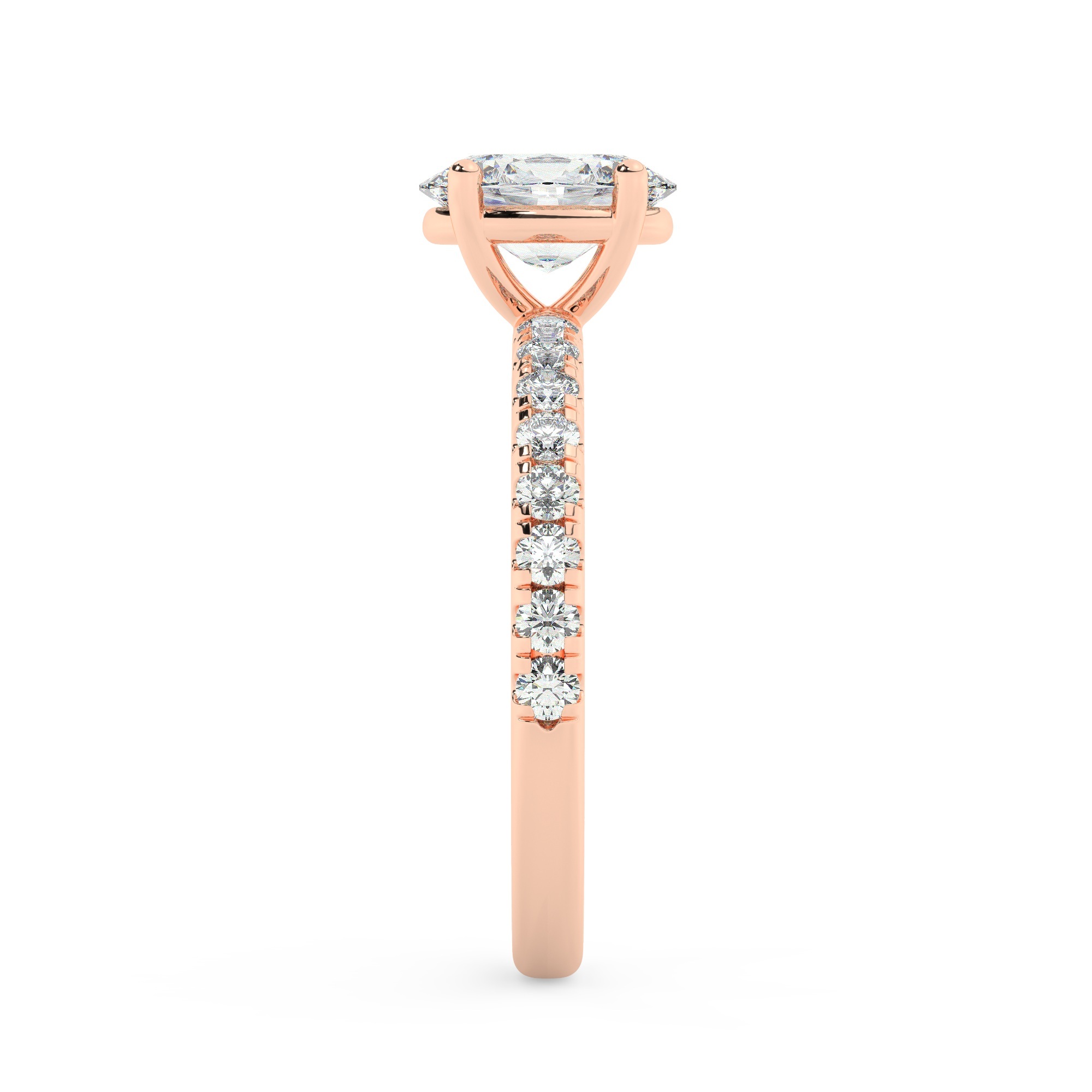 טבעת אירוסין סוליטר וזירקונים בצדדים דגם 50037 זהב אדום רוזגולד 14 קראט במרכז זירקוניה 0.50 קראט בחיתוך אובל מסביב ובצדדים זירקונים בחיתוך עגול