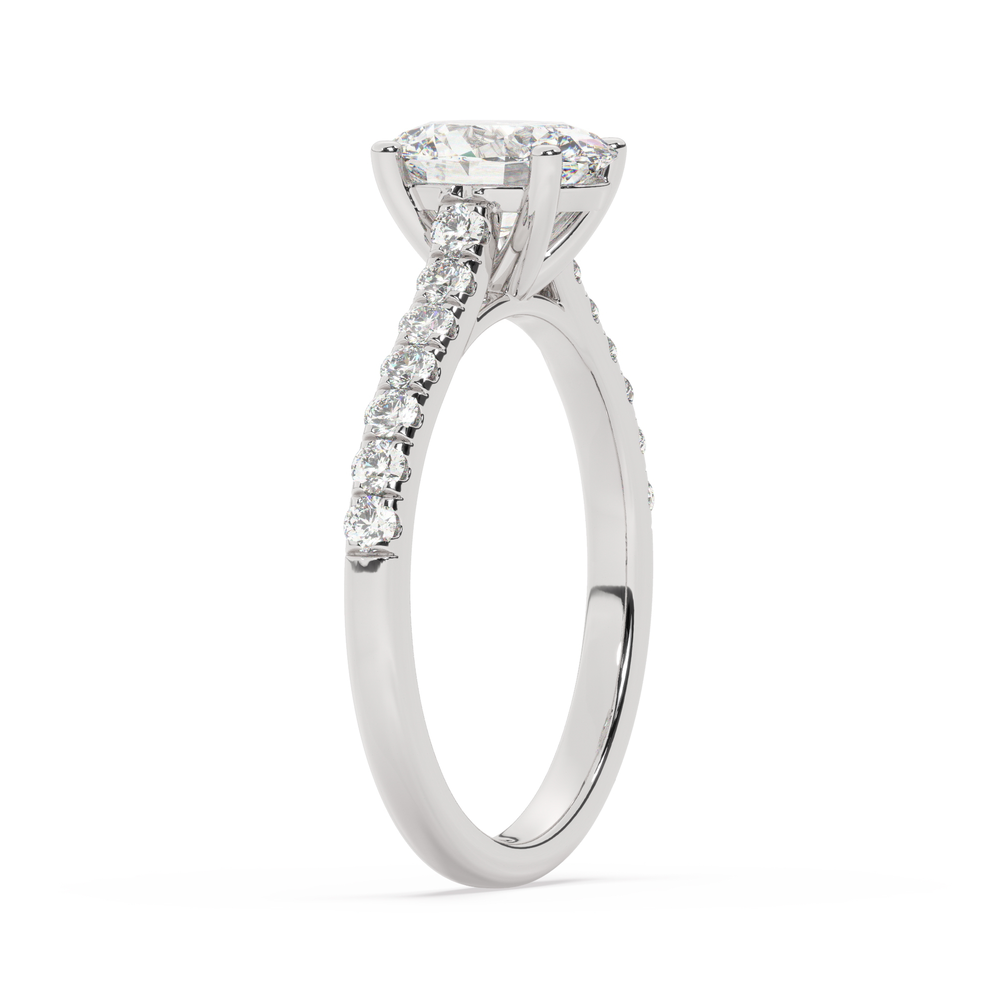 טבעת אירוסין סוליטר ויהלומים בצדדים דגם 50019 כסף מצופה זהב לבן במרכז זירקוניה 0.50 קראט בחיתוך אובל מסביב ובצדדים זירקונים בחיתוך עגול