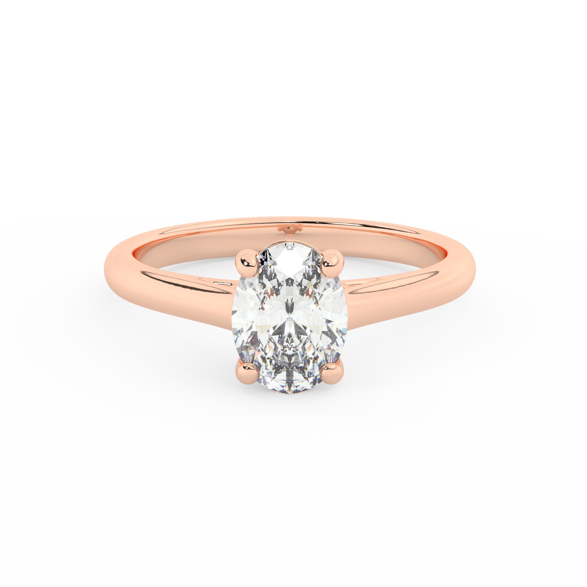 טבעת אירוסין סוליטר דגם 50029 זהב אדום רוזגולד 14 קראט במרכז זירקוניה במשקל כולל של 0.75 קראט בחיתוך אובל עם תעודה גמולוגית