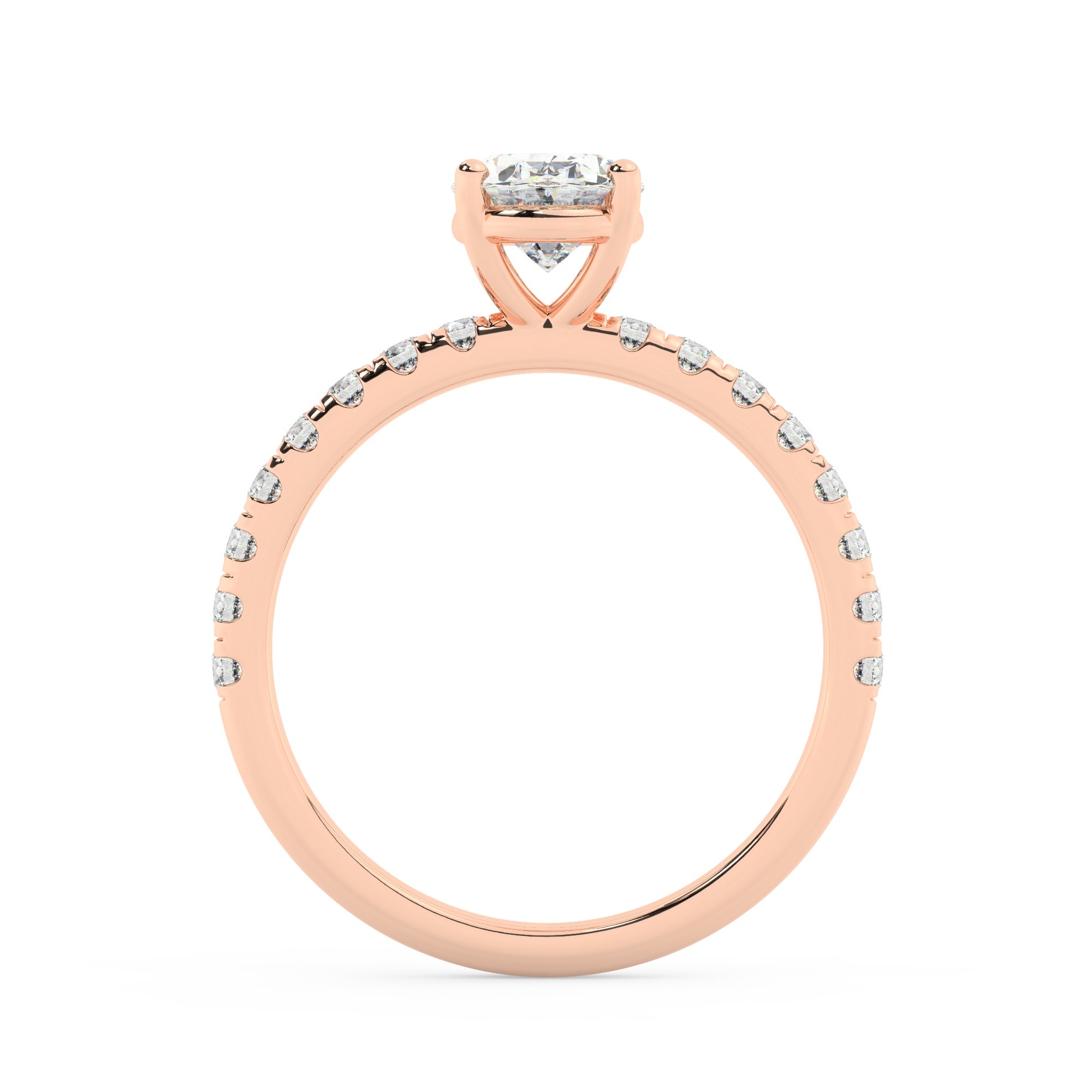טבעת אירוסין סוליטר וזירקונים בצדדים דגם 50037 זהב אדום רוזגולד 14 קראט במרכז זירקוניה 0.75 קראט בחיתוך אובל מסביב ובצדדים זירקונים בחיתוך עגול