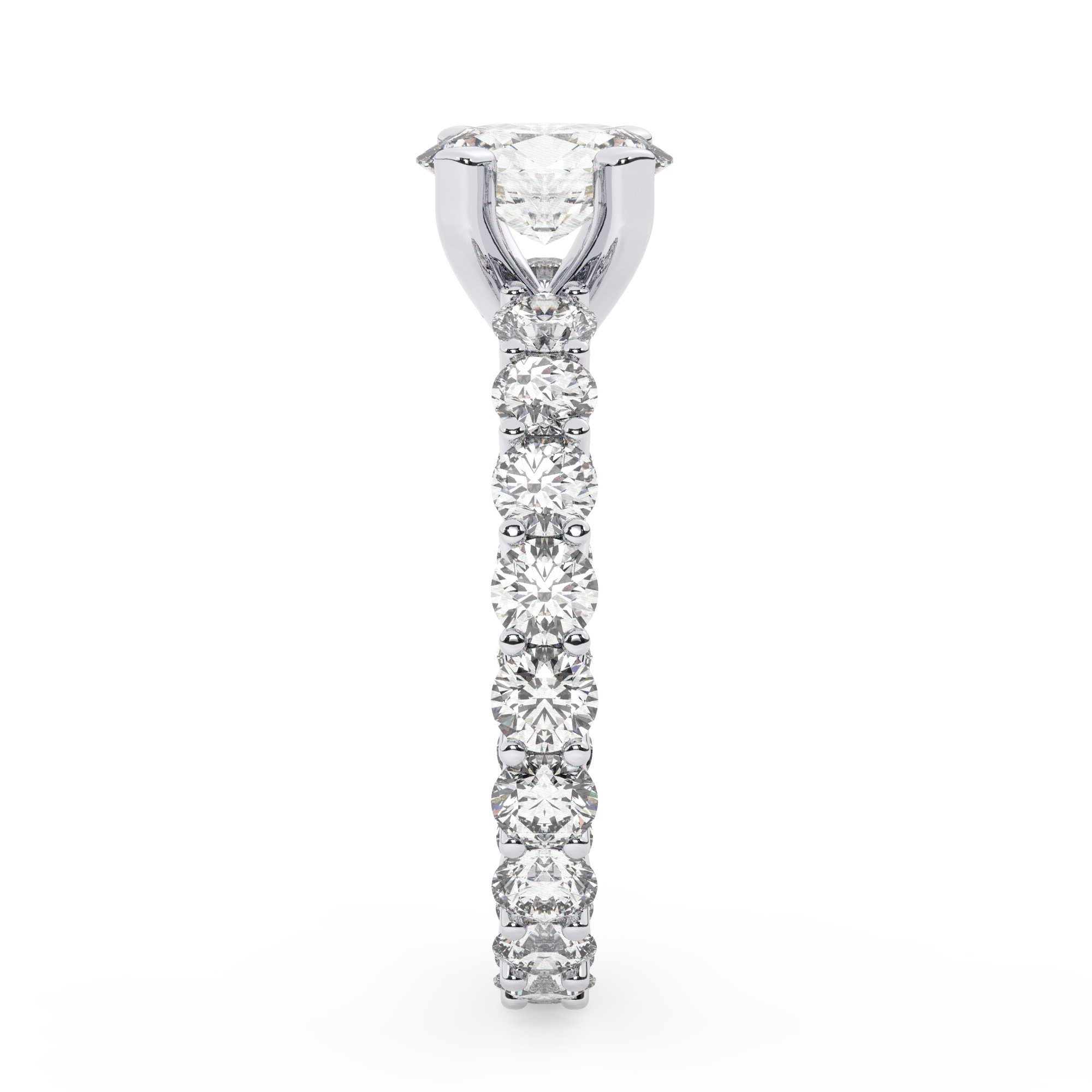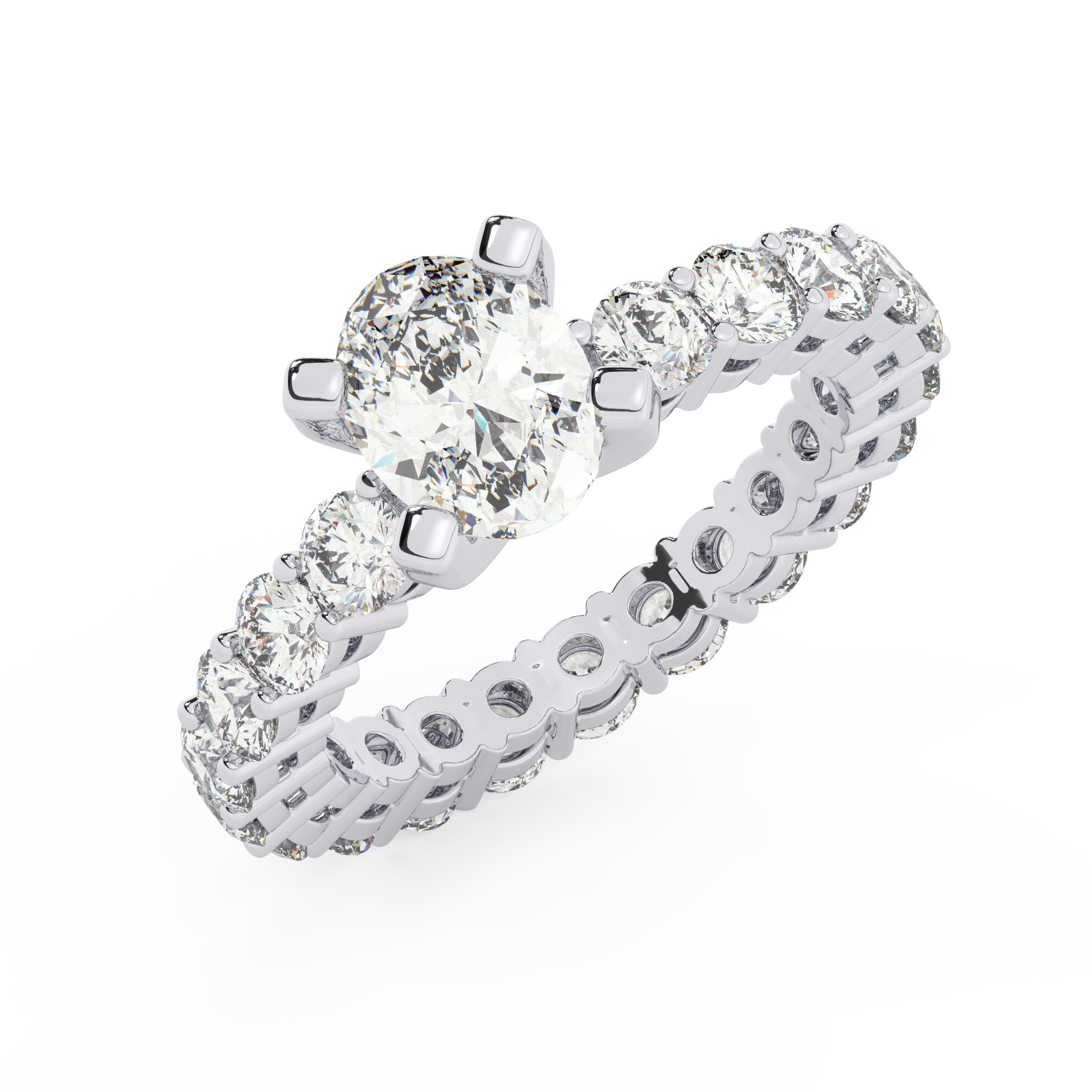 טבעת אירוסין סוליטר וזירקונים בצדדים איטרנטיני דגם 50044 זהב לבן 14 קראט במרכז זירקוניה 0.75 קראט בחיתוך אובל מסביב ובצדדים זירקונים בחיתוך עגול