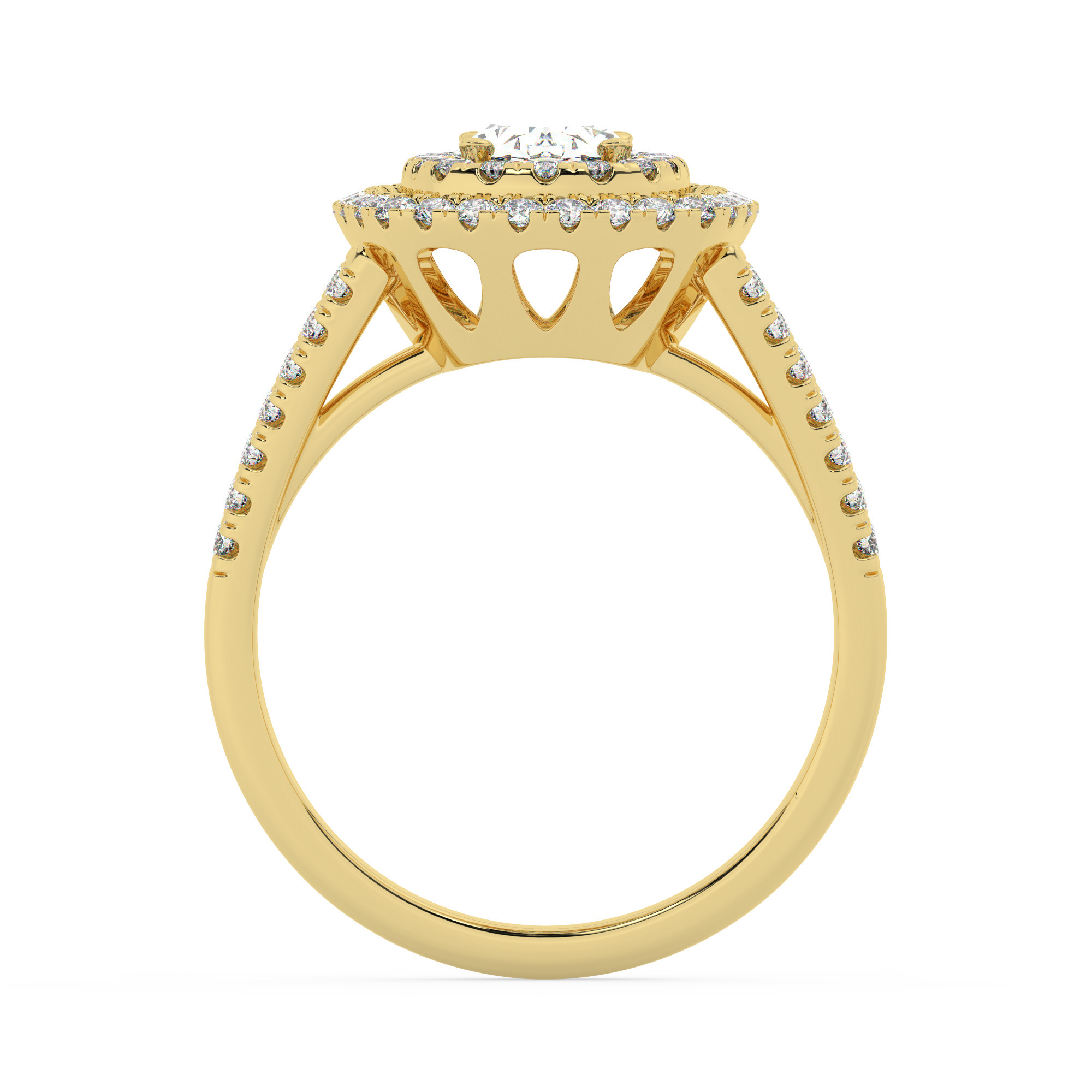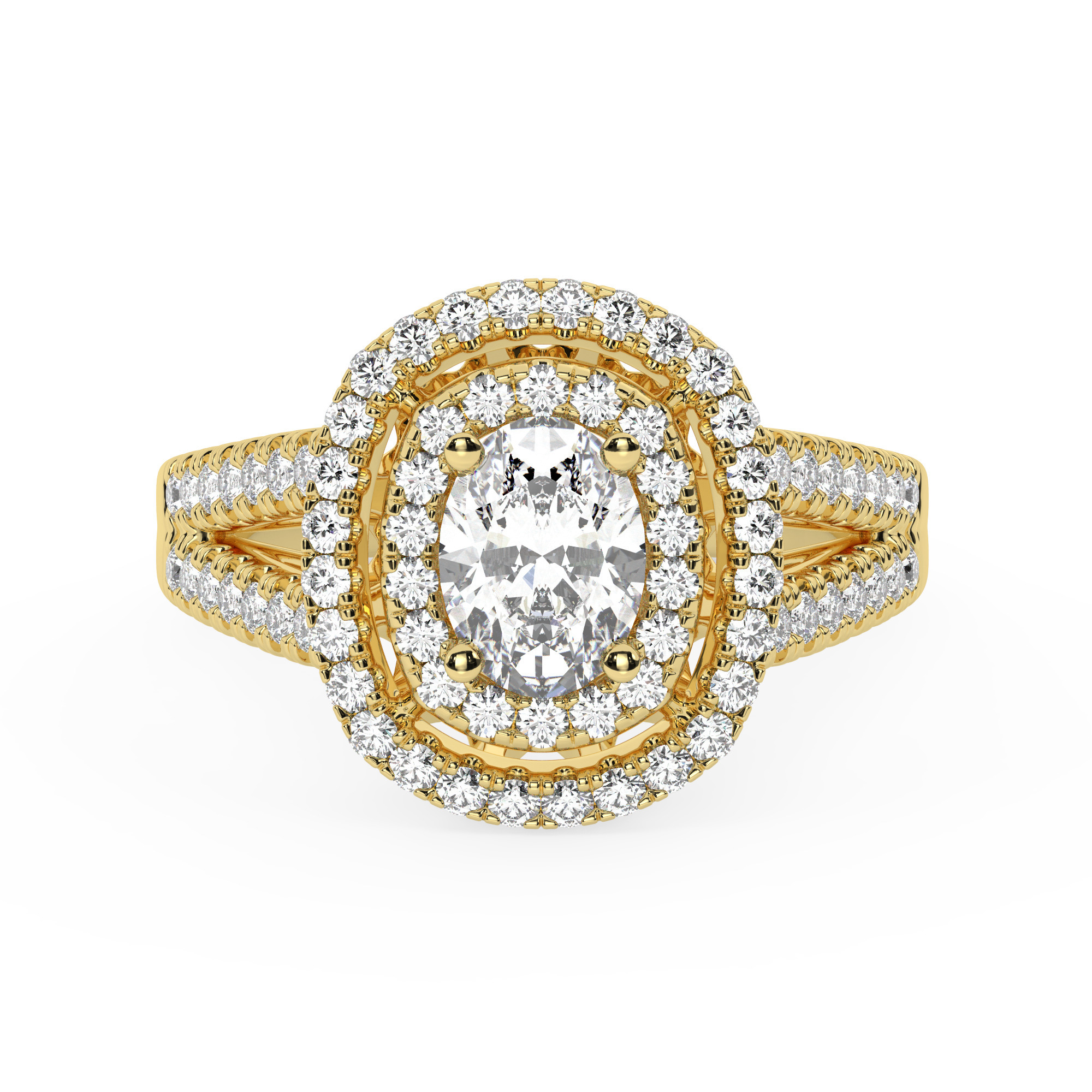 טבעת אירוסין היילו דגם 50025 זהב צהוב 14 קראט במרכז זירקוניה 0.75 קראט בחיתוך אובל מסביב ובצדדים זירקונים בחיתוך עגול