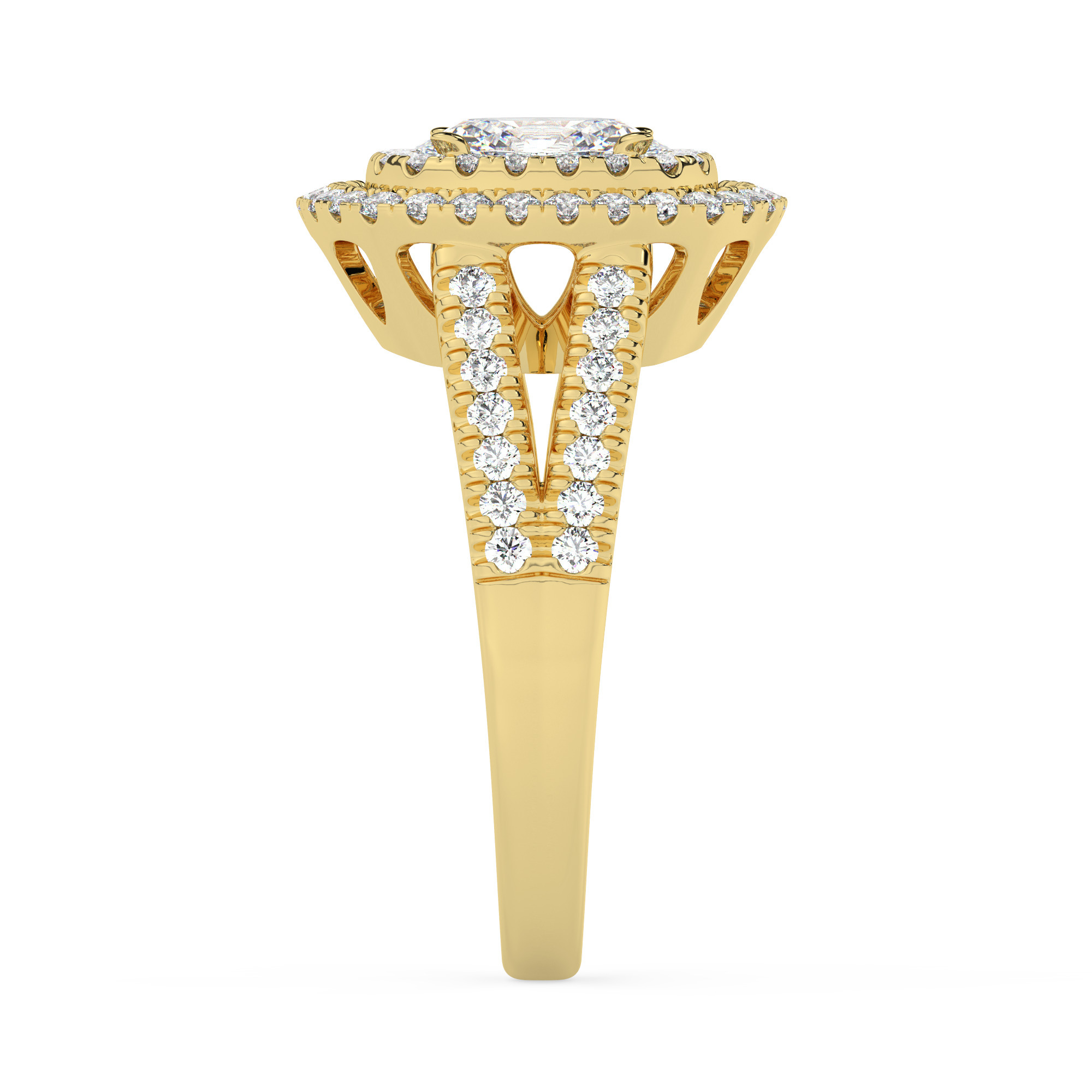 50% הנחהטבעת אירוסין היילו דגם ליטל זהב צהוב 14 קראט במרכז יהלום מעבדה 1 קראט מסביבו ובצדדים שורה של יהלומים עם תעודה גמולוגית אירופאית IGI טבעת הצעת נישואין