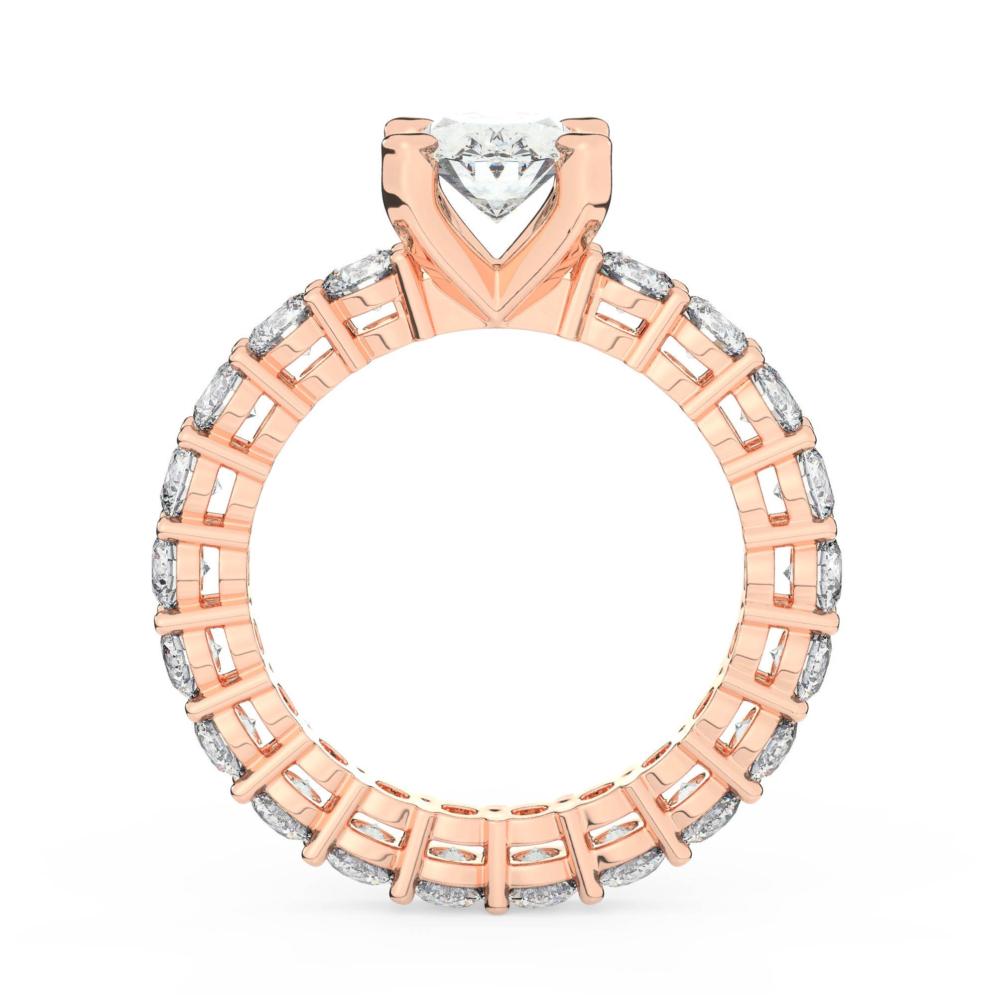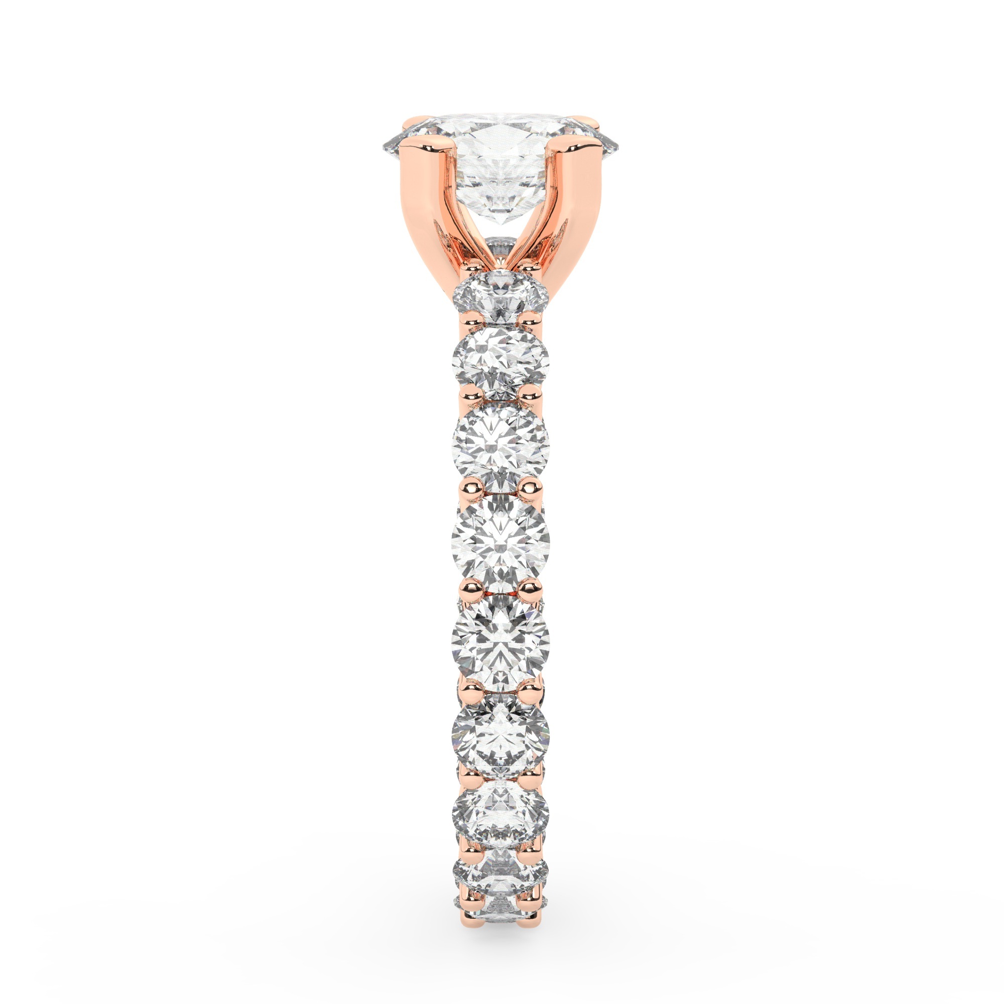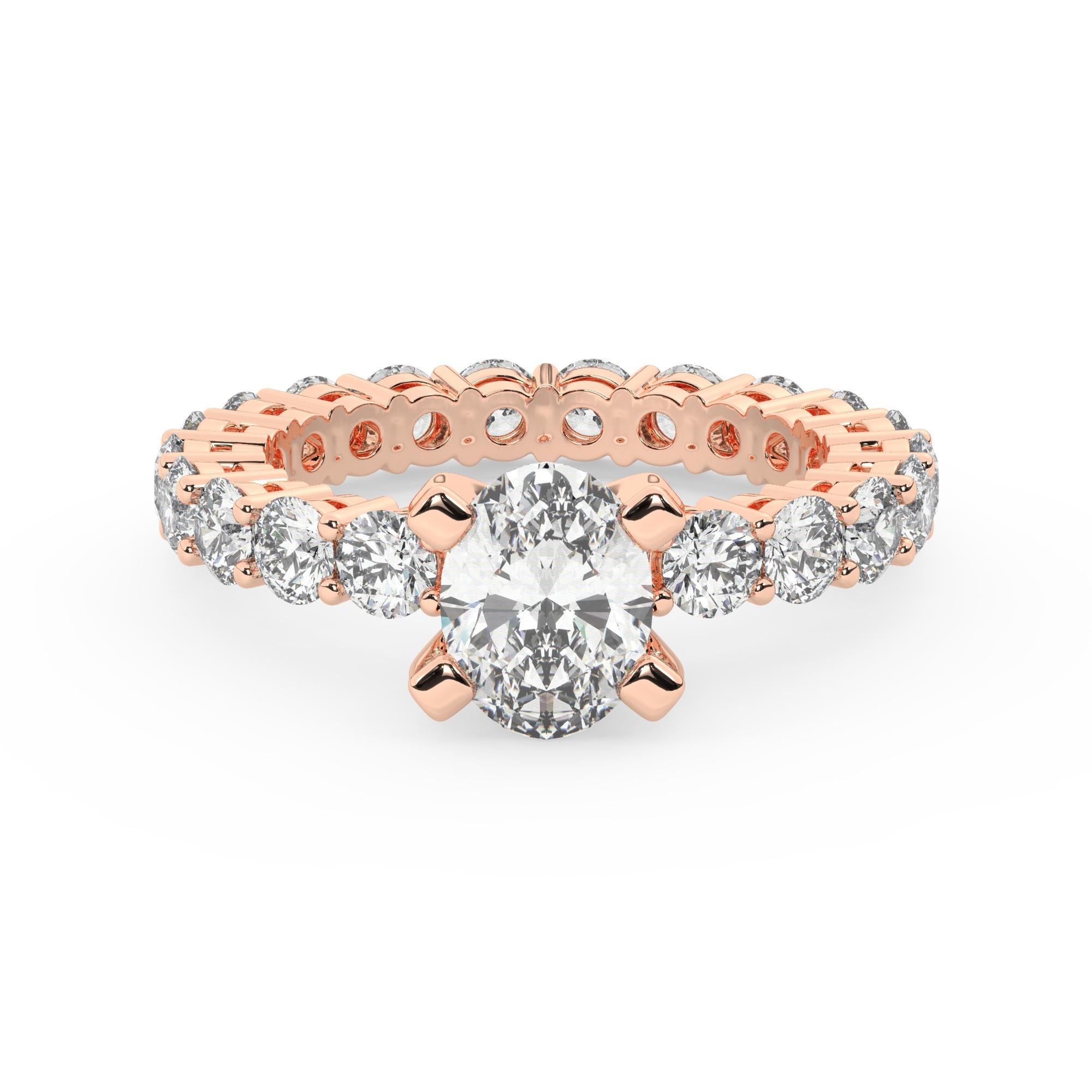טבעת אירוסין סוליטר וזירקונים בצדדים איטרנטיני דגם 50044 זהב אדום רוזגולד 14 קראט במרכז זירקוניה 1 קראט בחיתוך אובל מסביב ובצדדים זירקונים בחיתוך עגול