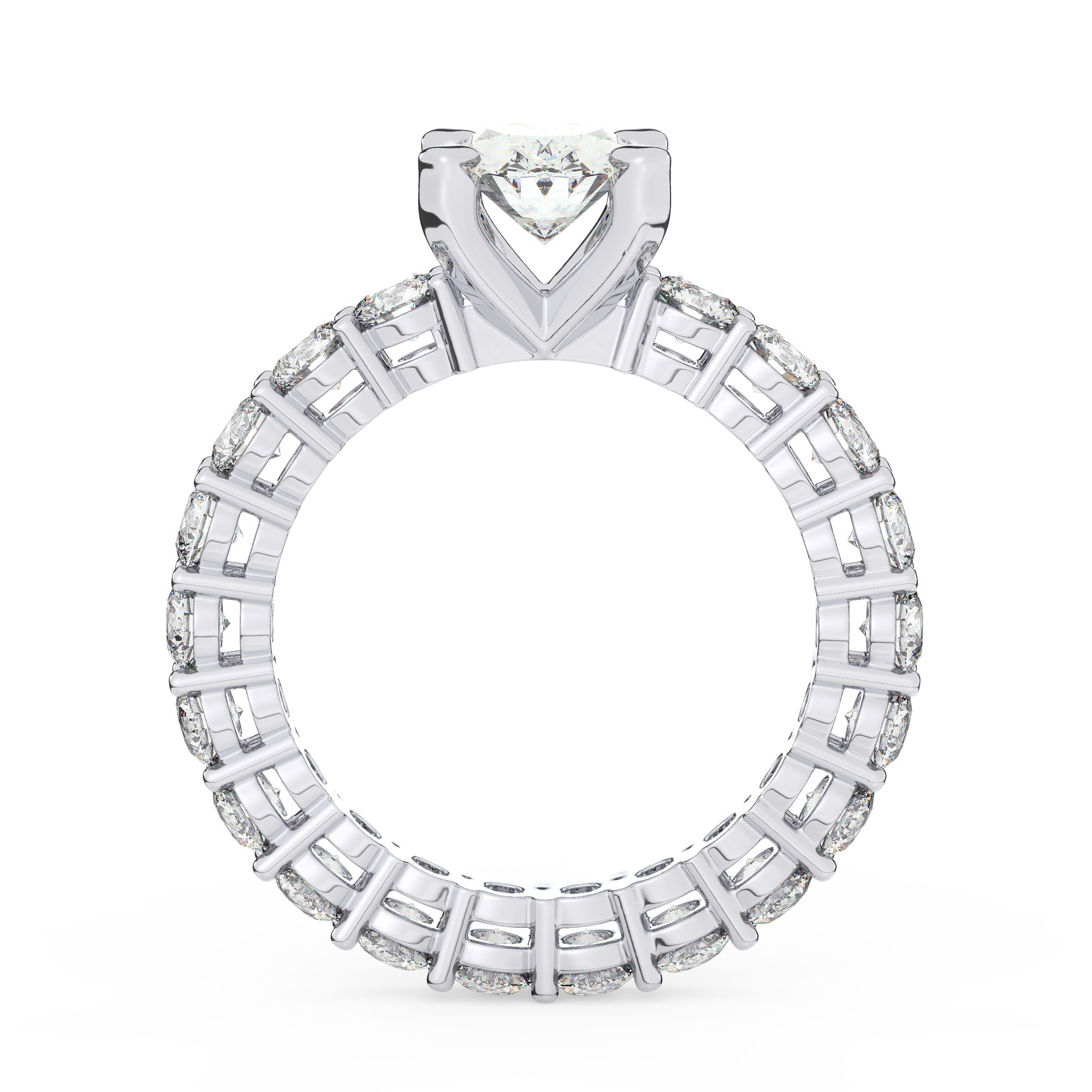 טבעת אירוסין סוליטר וזירקונים בצדדים איטרנטיני דגם 50044 זהב לבן 14 קראט במרכז זירקוניה 1 קראט בחיתוך אובל מסביב ובצדדים זירקונים בחיתוך עגול