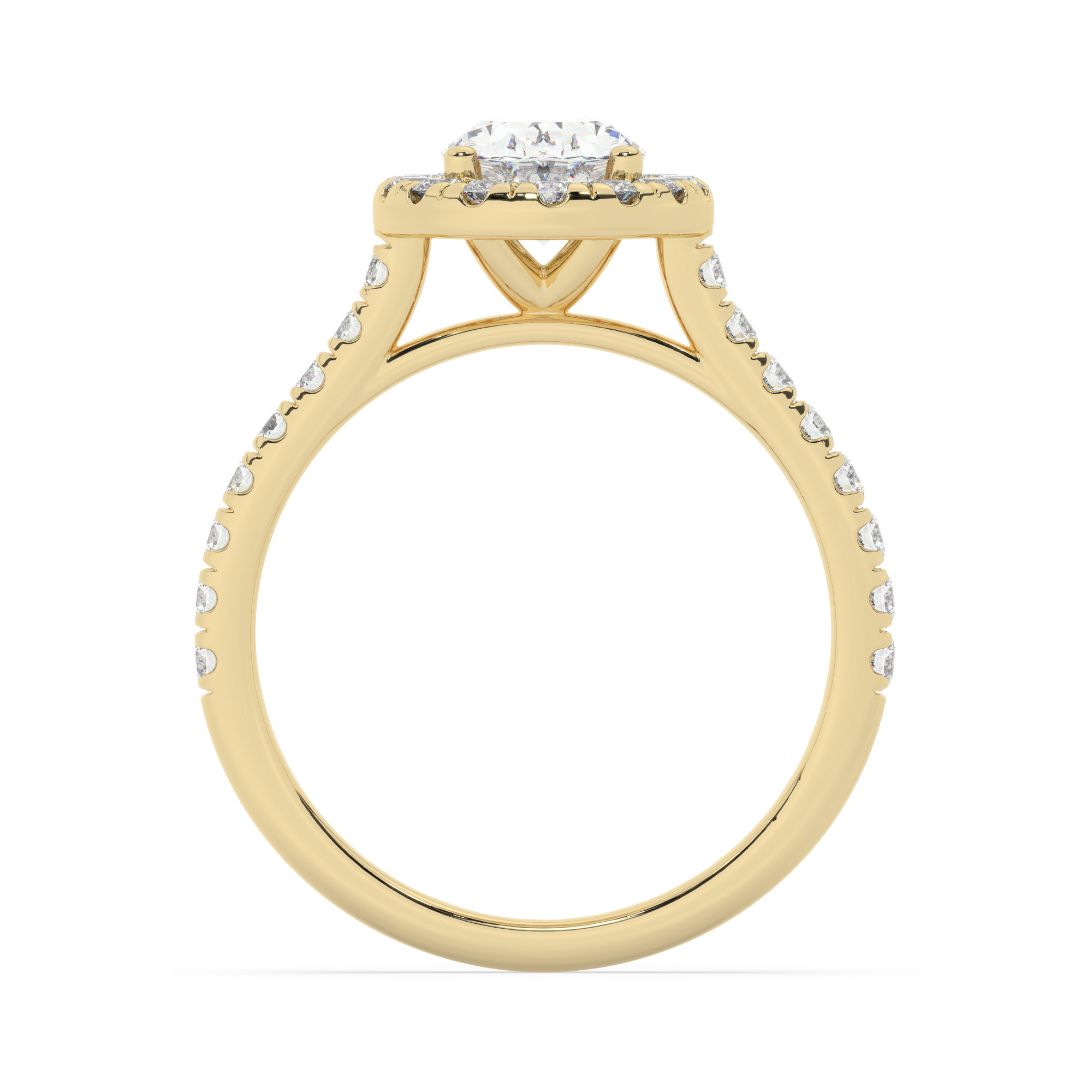 טבעת אירוסין היילו זירקונים בזהב צהוב 14 קראט
