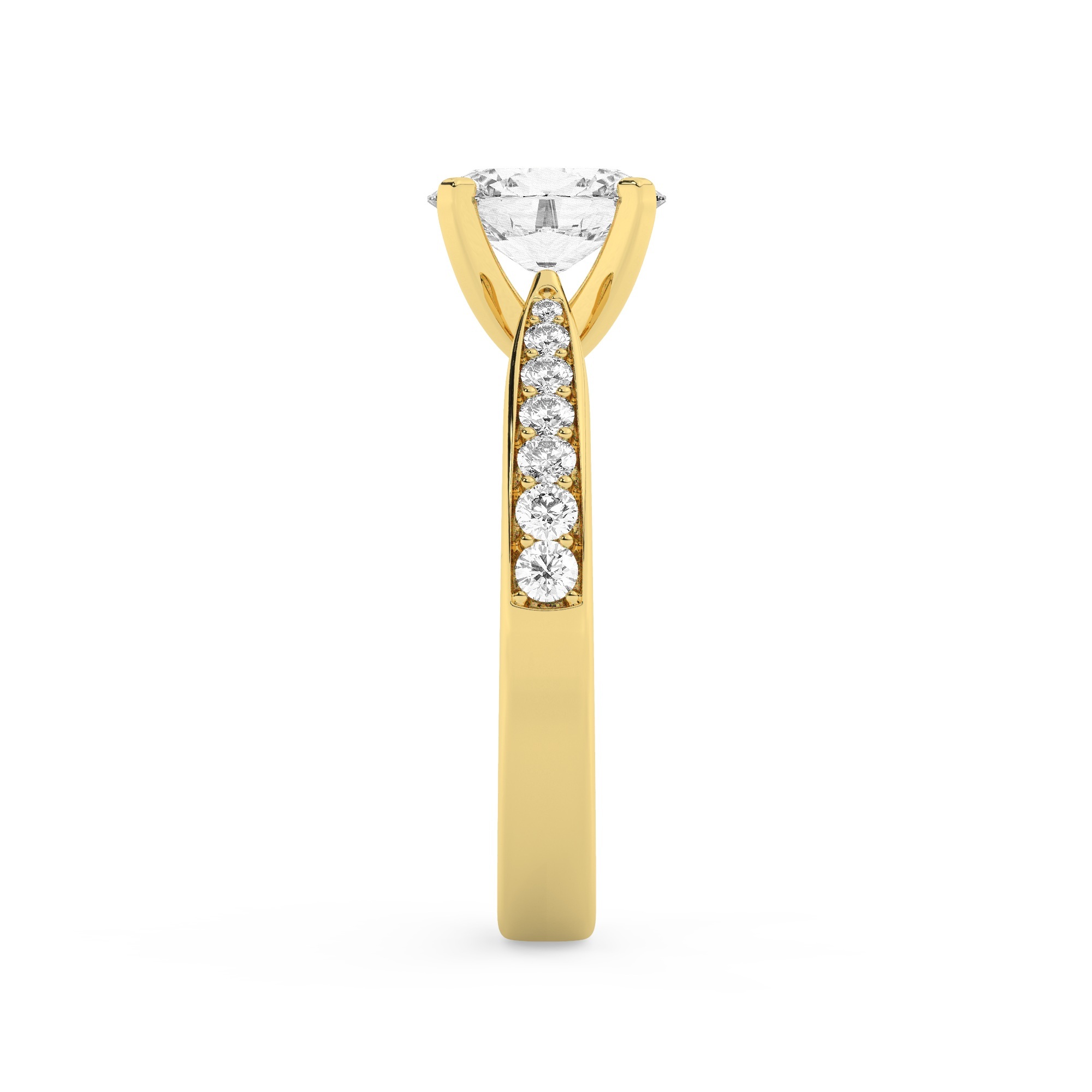 50% הנחהטבעת אירוסין סוליטר ויהלומים בצדדים דגם 50068 כסף מצופה זהב צהוב במרכז זירקוניה 2 קראט בחיתוך אובל מסביב ובצדדים זירקונים