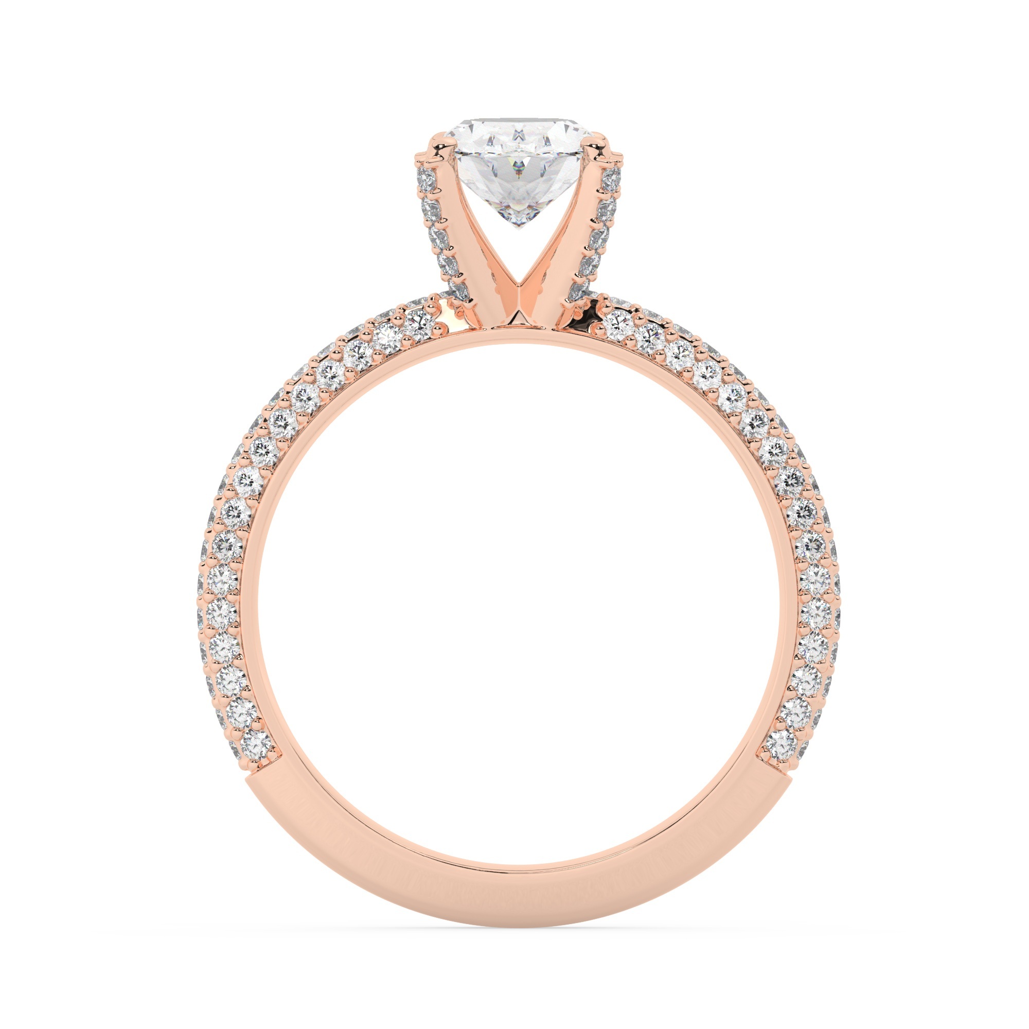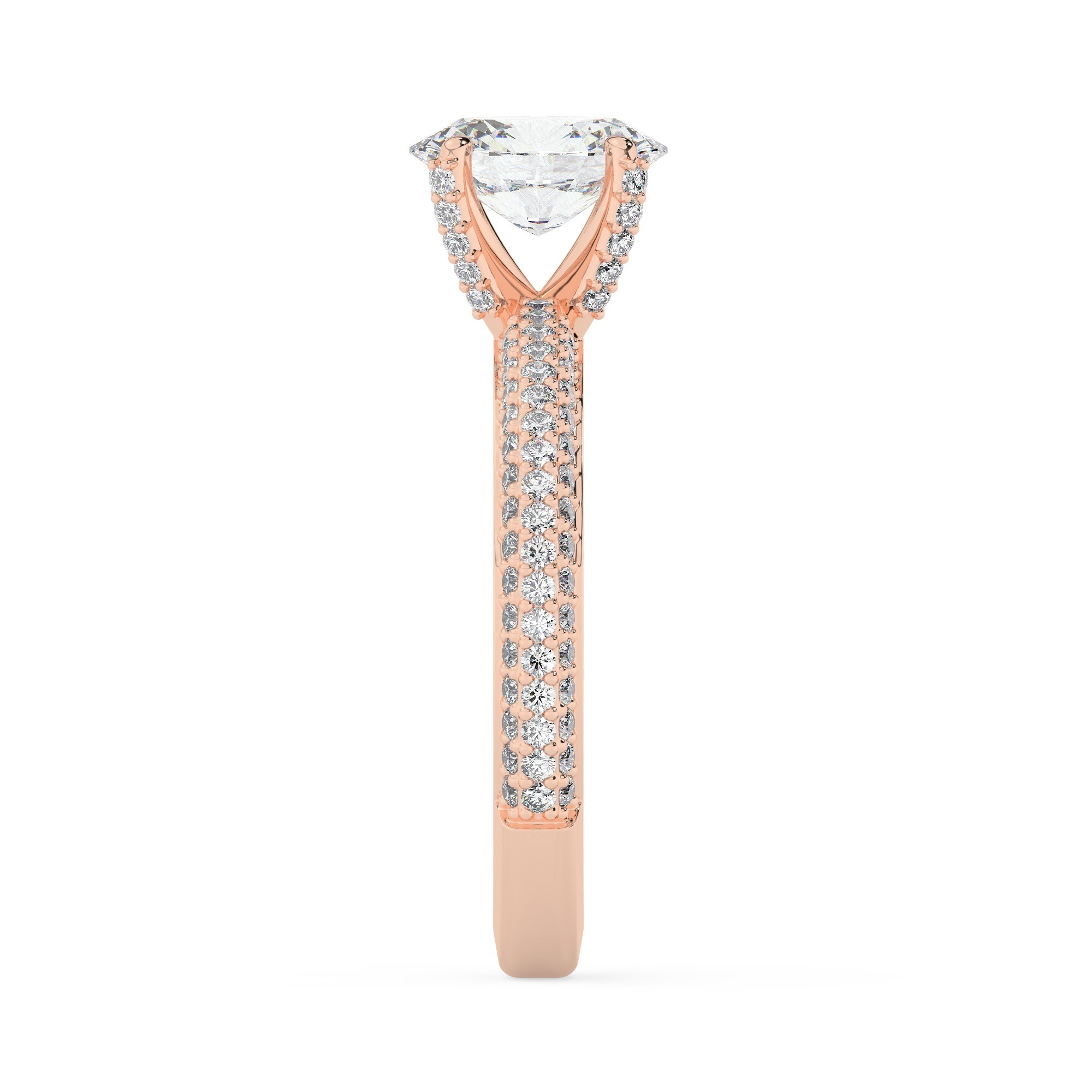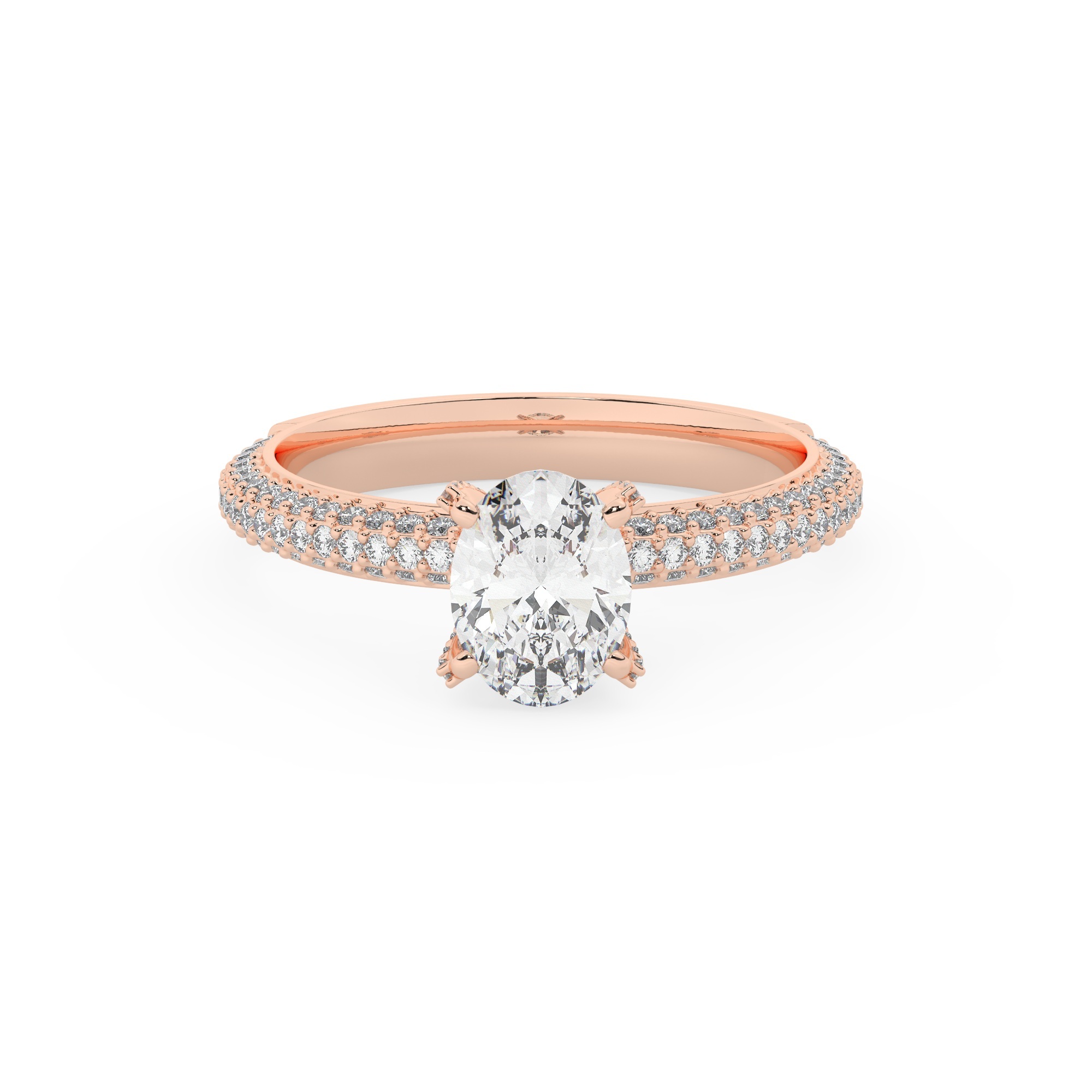 טבעת אירוסין סוליטר ויהלומים בצדדים דגם 50012 זהב אדום רוזגולד 14 קראט במרכז זירקוניה 1.50 קראט בחיתוך אובל מסביב ובצדדים זירקונים בחיתוך עגול