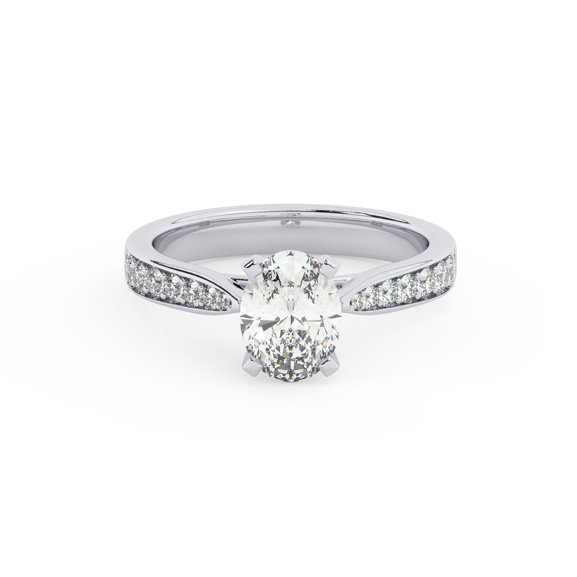 טבעת אירוסין סוליטר וזירקונים בצדדים דגם 50017 זהב לבן 14 קראט במרכז זירקוניה 1.50 קראט בחיתוך אובל מסביב ובצדדים זירקונים בחיתוך עגול