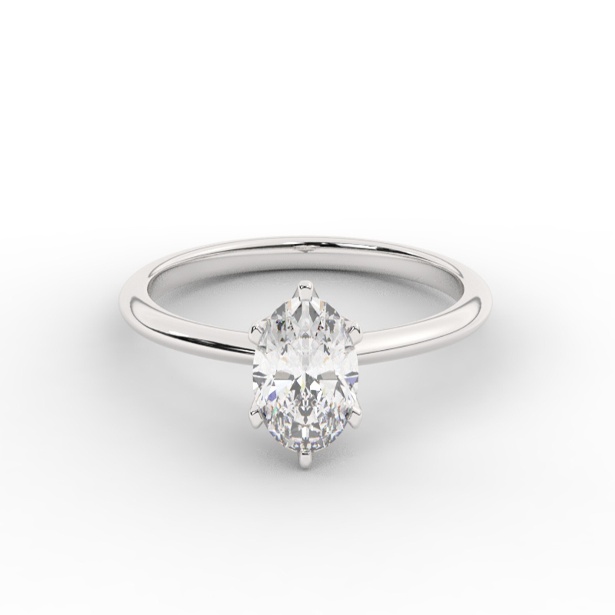 טבעת אירוסין סוליטר דגם 50023 זהב לבן 14 קראט במרכז זירקוניה במשקל כולל של 1.50 קראט בחיתוך אובל עם תעודה גמולוגית