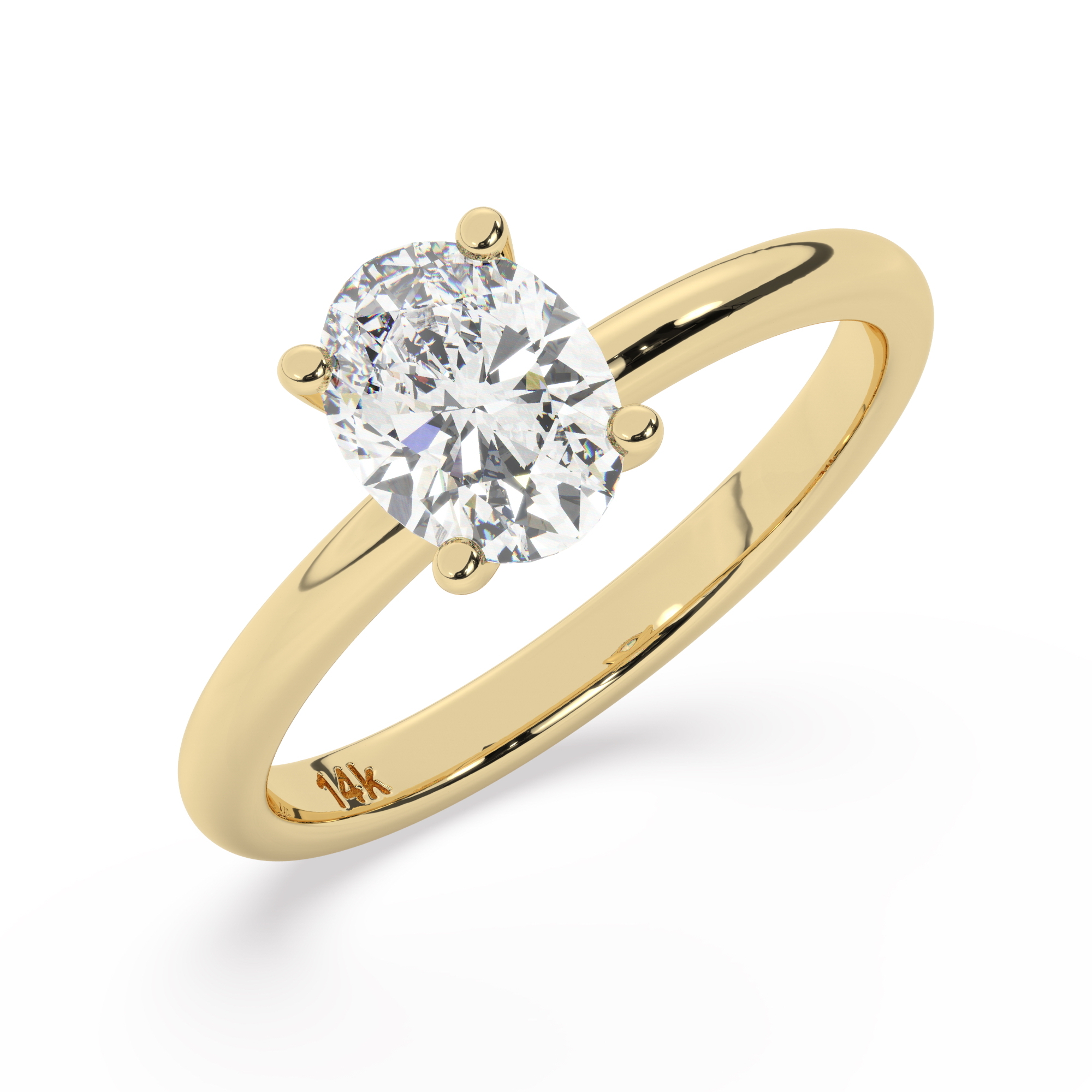 טבעת אירוסין סוליטר דגם 50016 כסף מצופה זהב צהוב במרכז זירקוניה במשקל כולל של 1.50 קראט בחיתוך אובל עם תעודה גמולוגית
