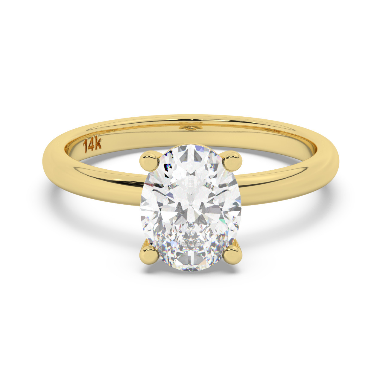 טבעת אירוסין סוליטר דגם 50016 זהב צהוב 14 קראט במרכז זירקוניה במשקל כולל של 2 קראט בחיתוך אובל עם תעודה גמולוגית