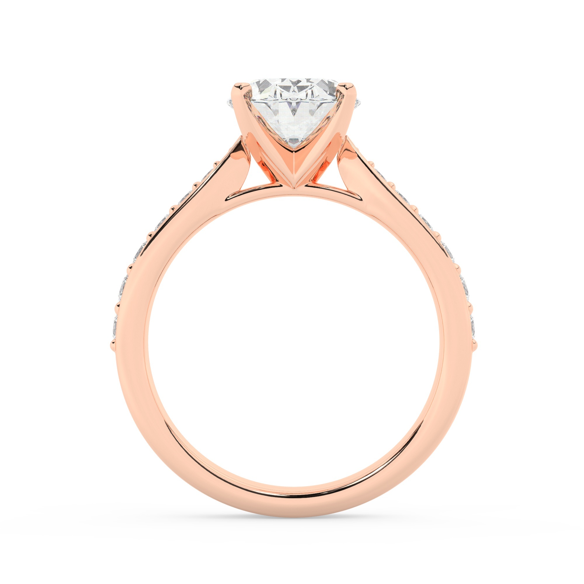טבעת אירוסין סוליטר וזירקונים בצדדים דגם 50017 כסף מצופה זהב אדום רוזגולד במרכז זירקוניה 2 קראט בחיתוך אובל מסביב ובצדדים זירקונים בחיתוך עגול