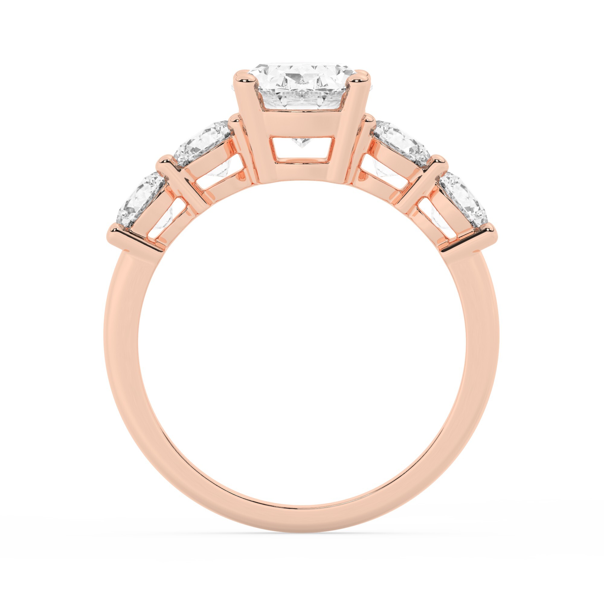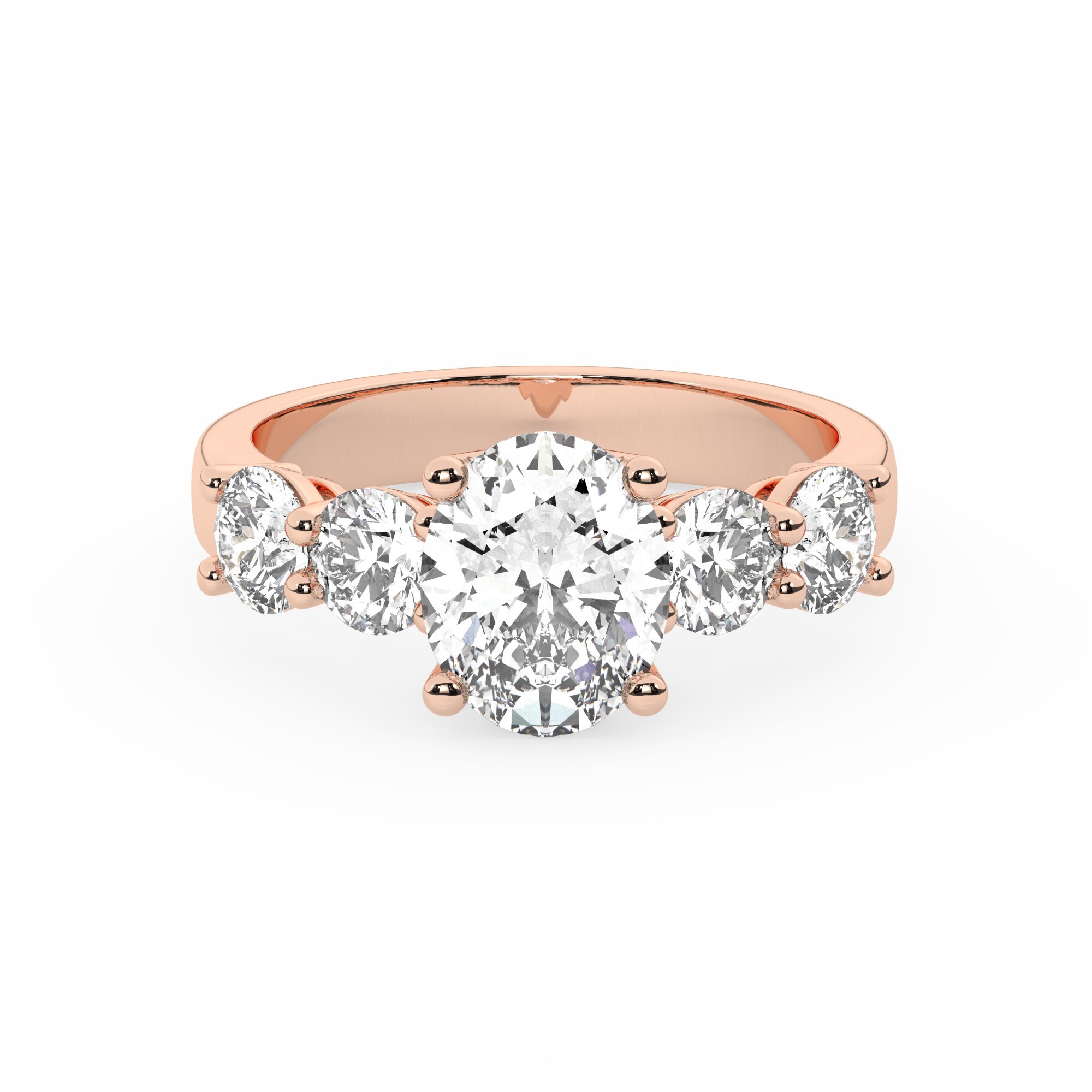 טבעת אירוסין סוליטר וזירקונים בצדדים דגם 50030 כסף מצופה זהב אדום רוזגולד במרכז זירקוניה 2 קראט בחיתוך אובל מסביב ובצדדים זירקונים בחיתוך עגול
