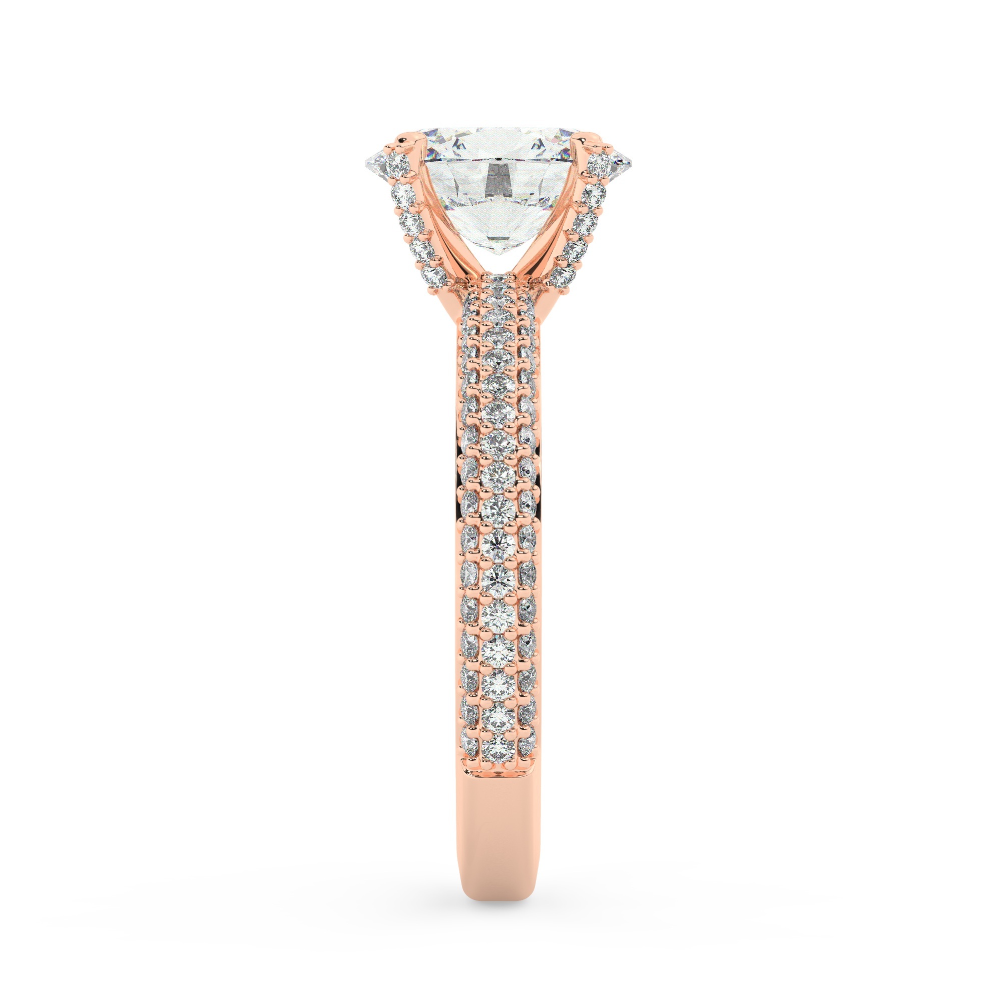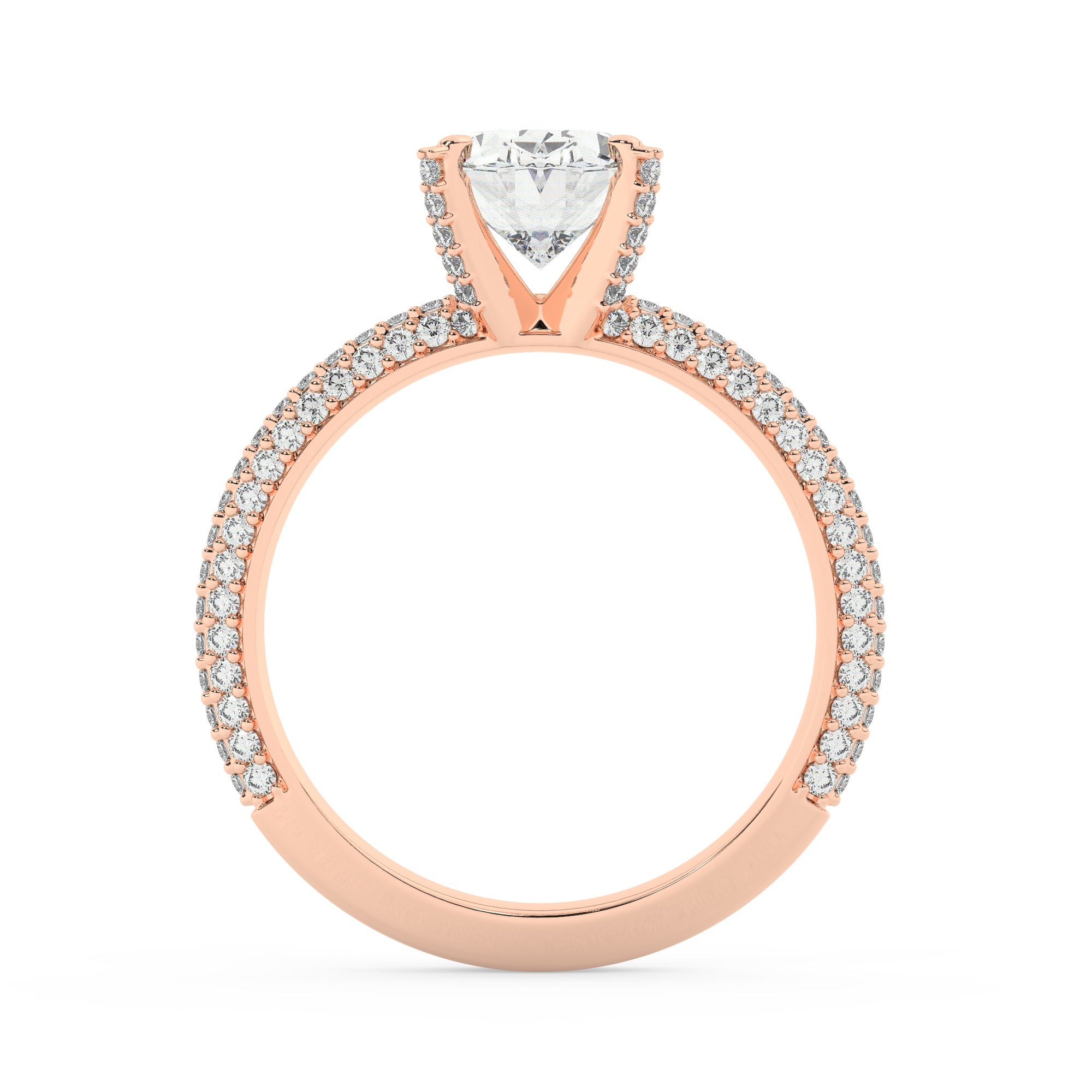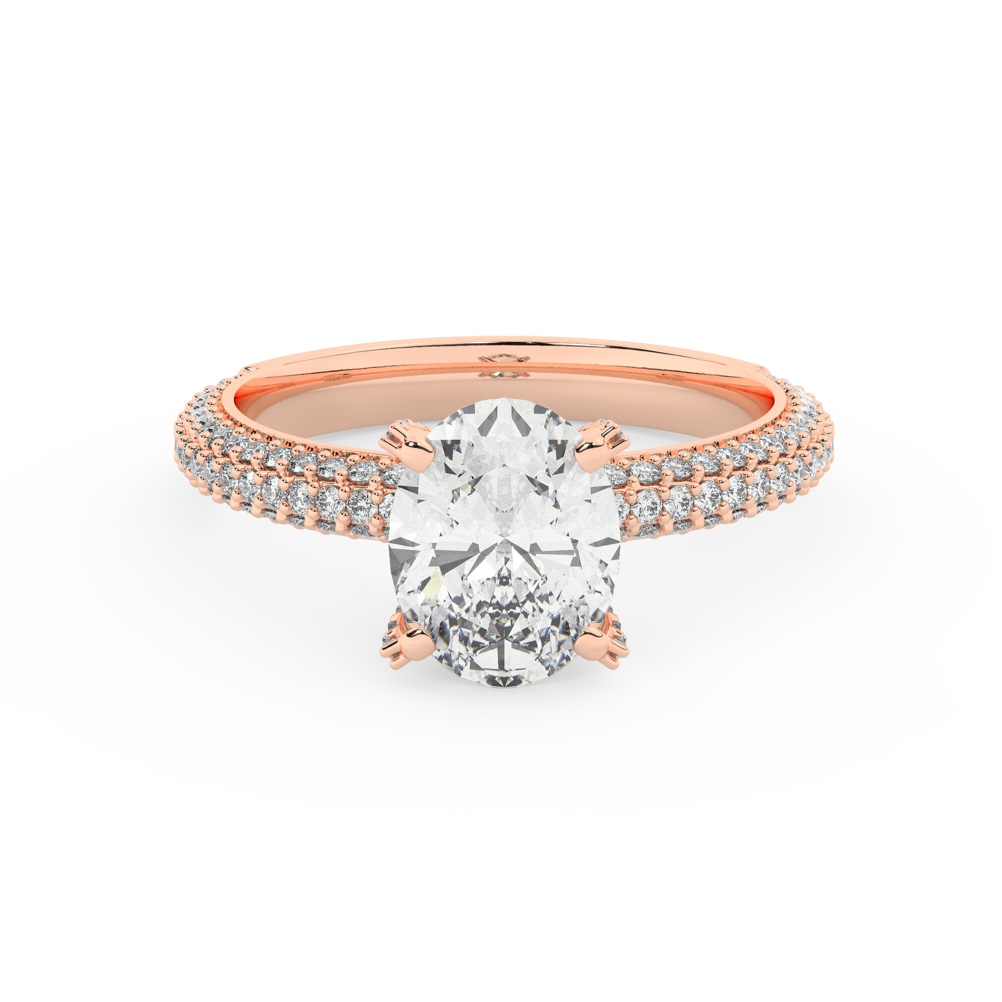 טבעת אירוסין סוליטר ויהלומים בצדדים דגם 50012 זהב אדום רוזגולד 14 קראט במרכז זירקוניה 2.50 קראט בחיתוך אובל מסביב ובצדדים זירקונים בחיתוך עגול