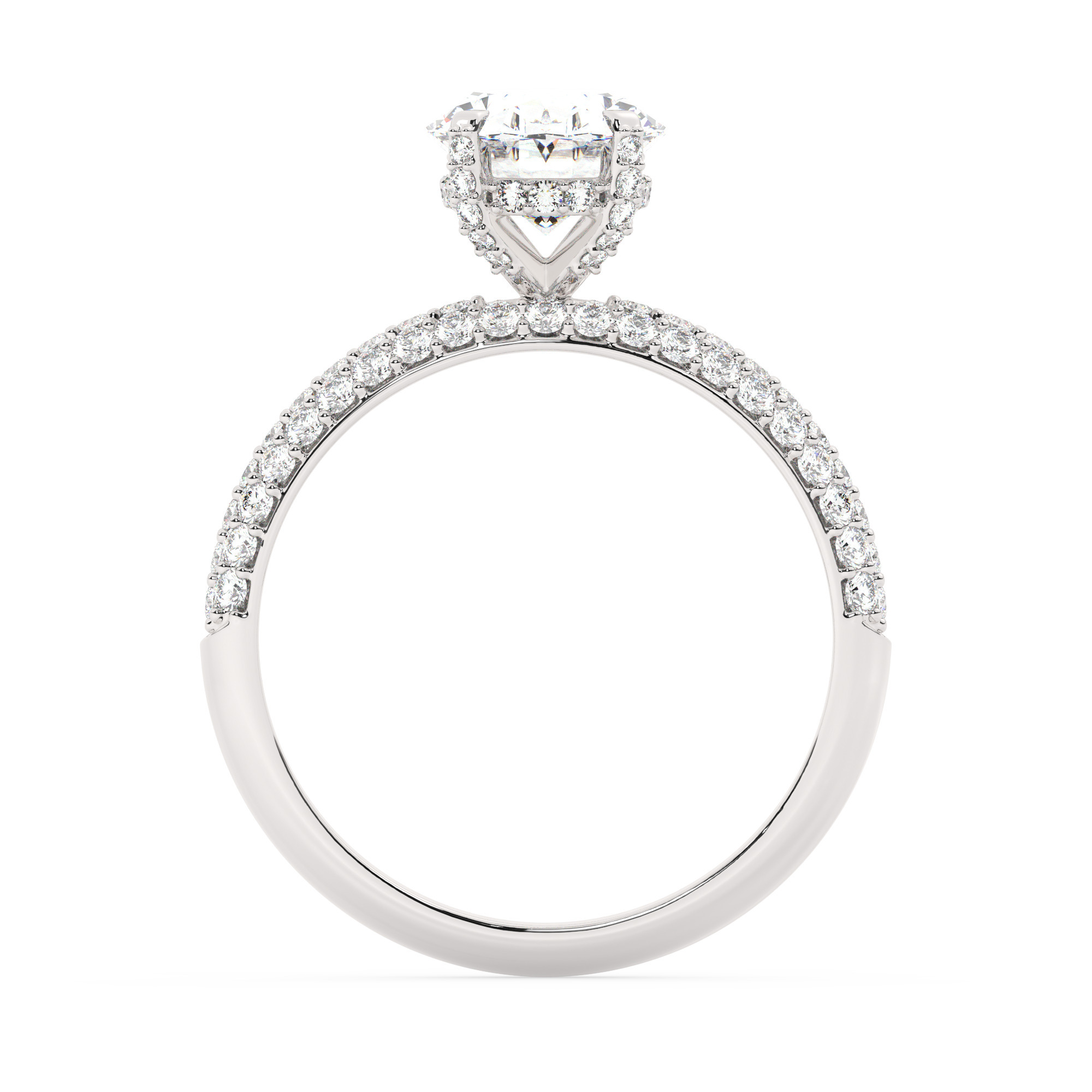 טבעת אירוסין סוליטר וזירקונים בצדדים דגם 50014 זהב לבן 14 קראט במרכז זירקוניה 2.50 קראט בחיתוך אובל מסביב ובצדדים זירקונים בחיתוך עגול