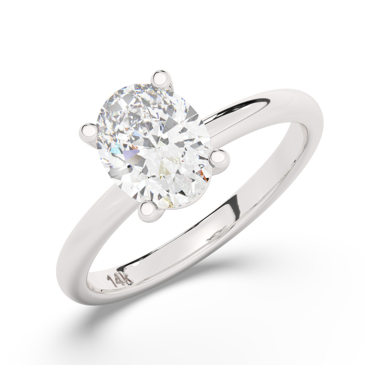 טבעת אירוסין סוליטר דגם 50016 זהב לבן 14 קראט במרכז זירקוניה במשקל כולל של 2.50 קראט בחיתוך אובל עם תעודה גמולוגית