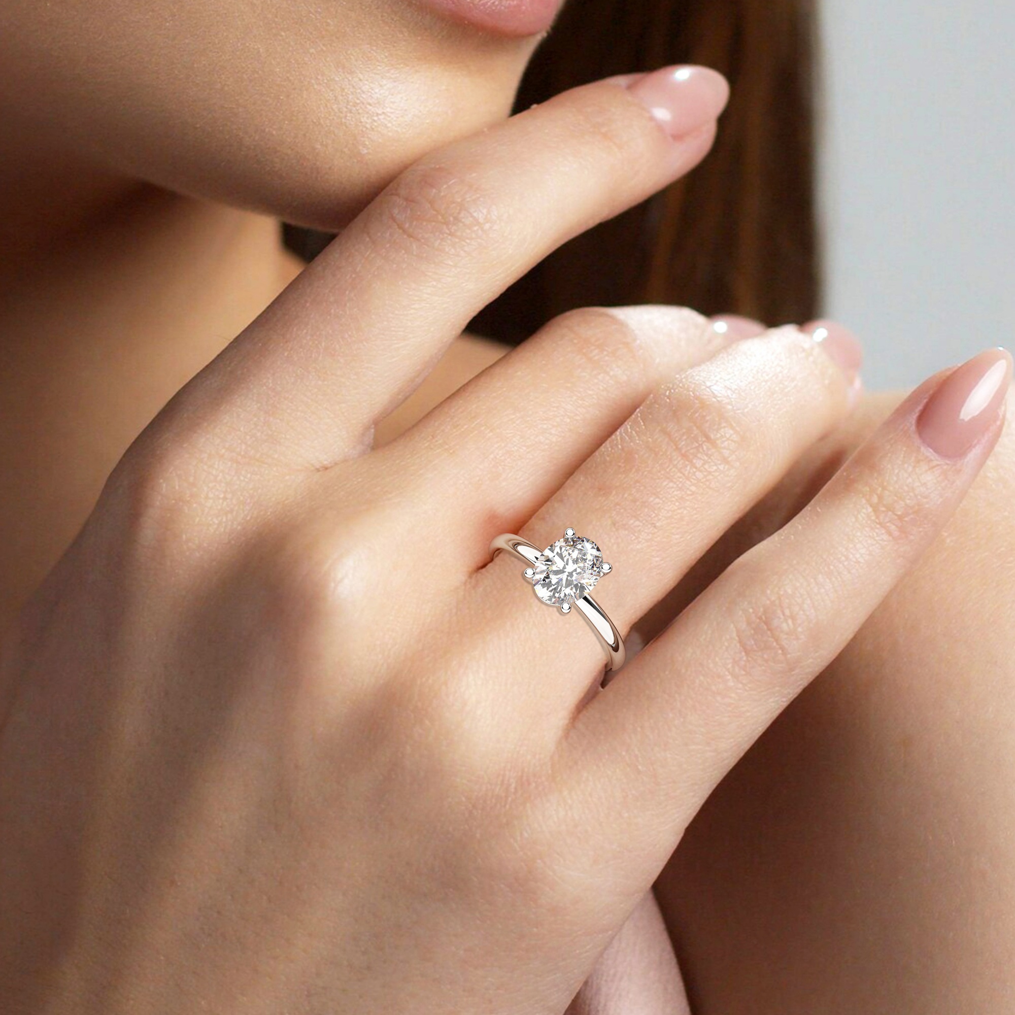 50% הנחהטבעת אירוסין דגם אנה זהב לבן 14 קראט סוליטר יהלום טבעי בחיתוך אובל 1.00 קראט שיבוץ מרטיני עם תעודה גמולוגית אמריקאית GIA טבעת הצעת נישואין