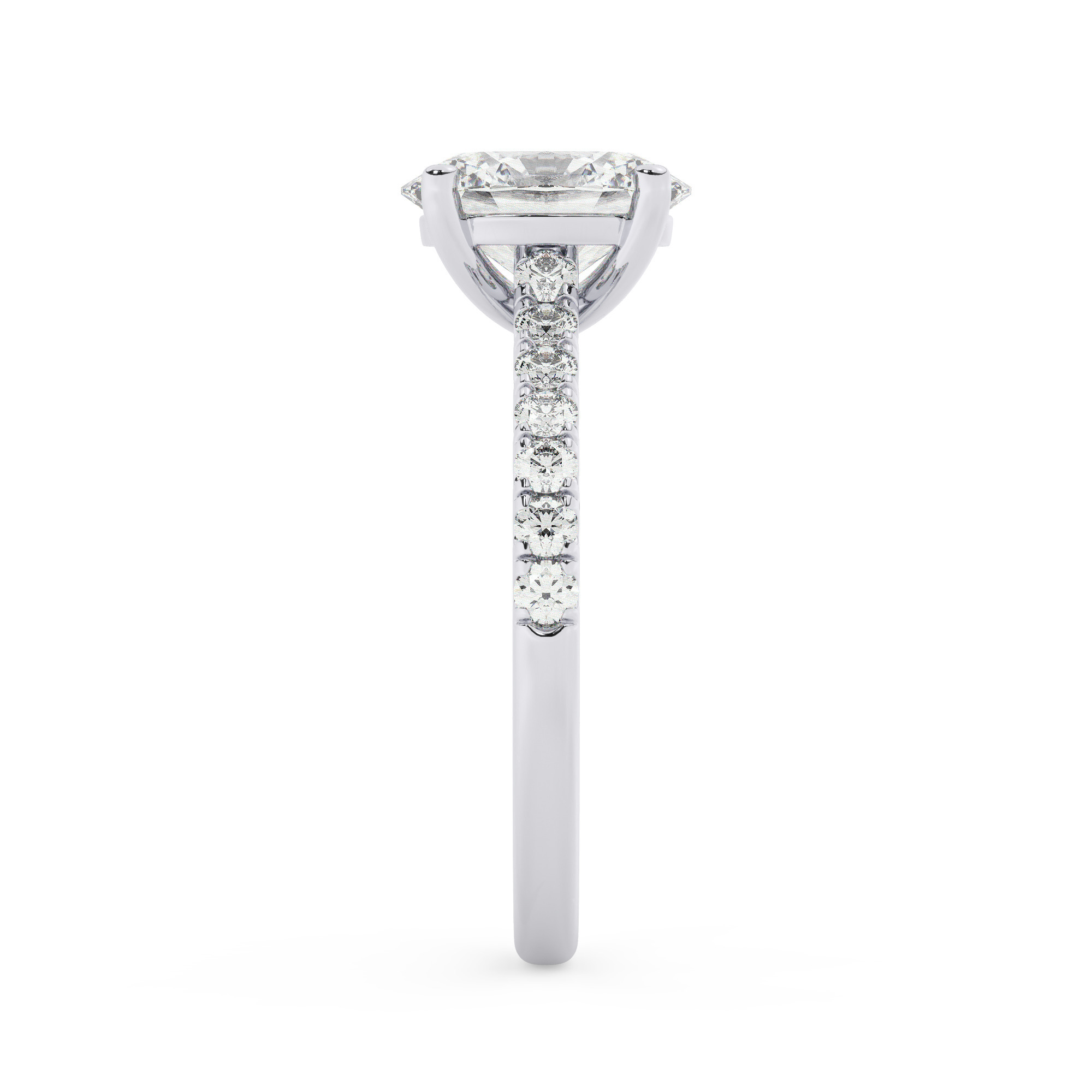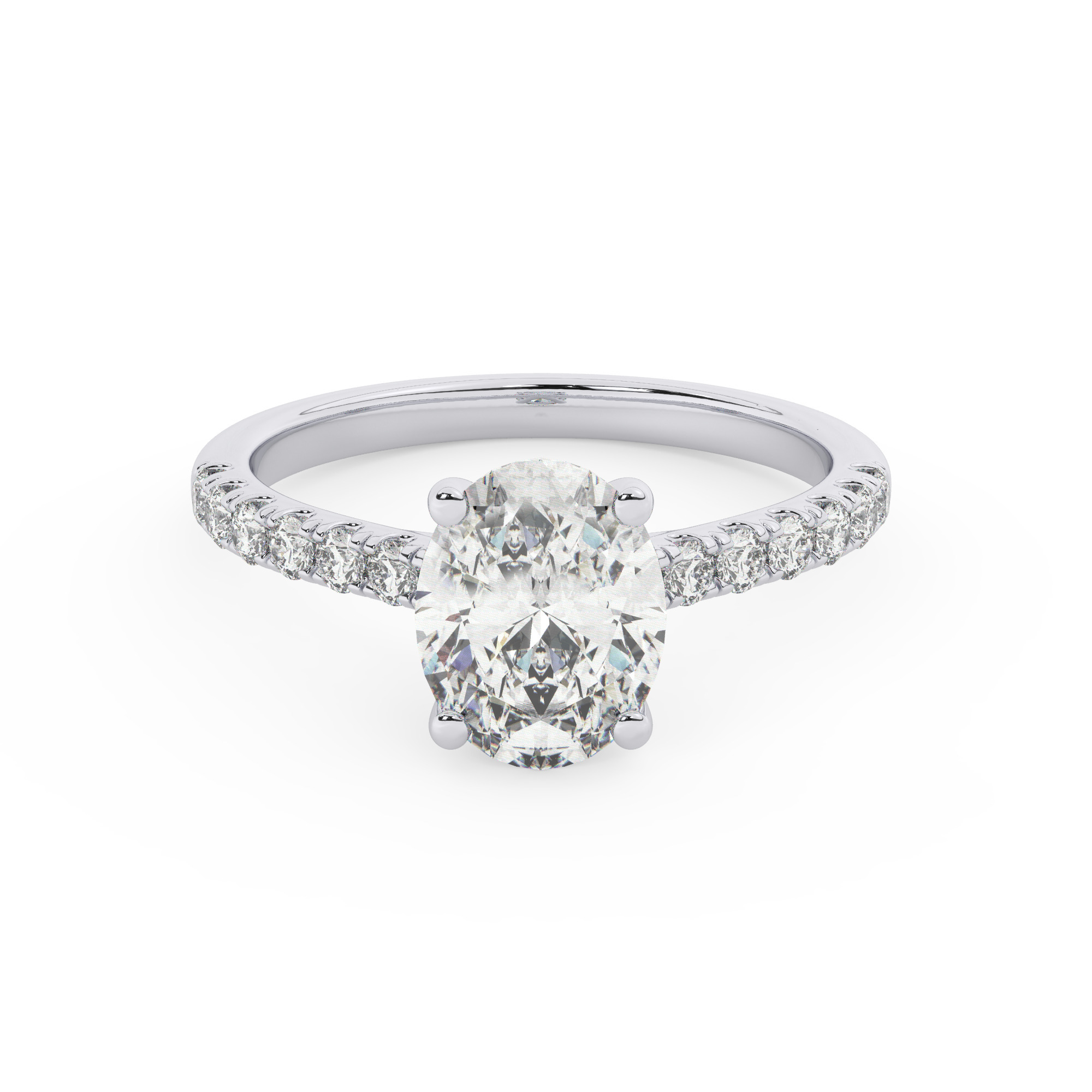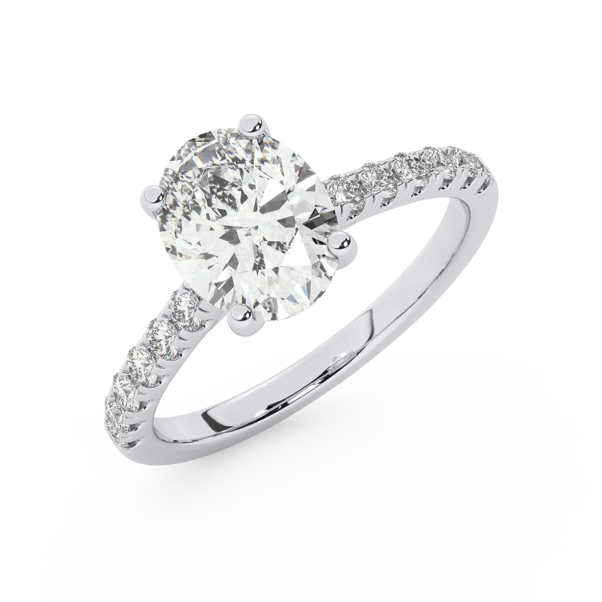 טבעת אירוסין סוליטר ויהלומים בצדדים דגם 50019 זהב לבן 14 קראט במרכז זירקוניה 2.50 קראט בחיתוך אובל מסביב ובצדדים זירקונים בחיתוך עגול