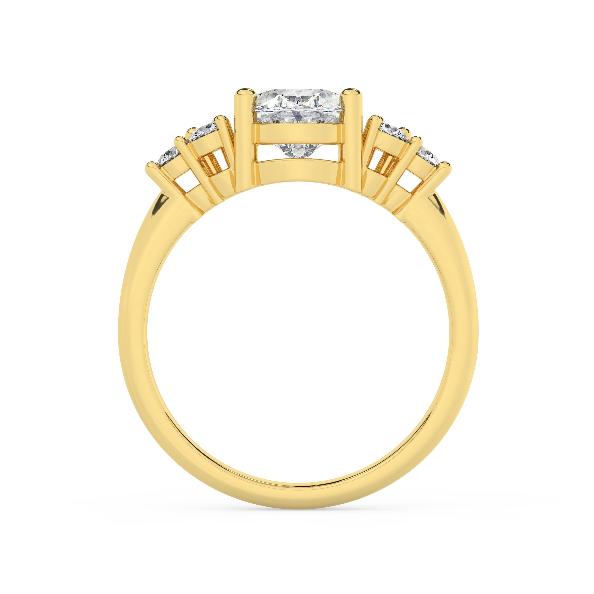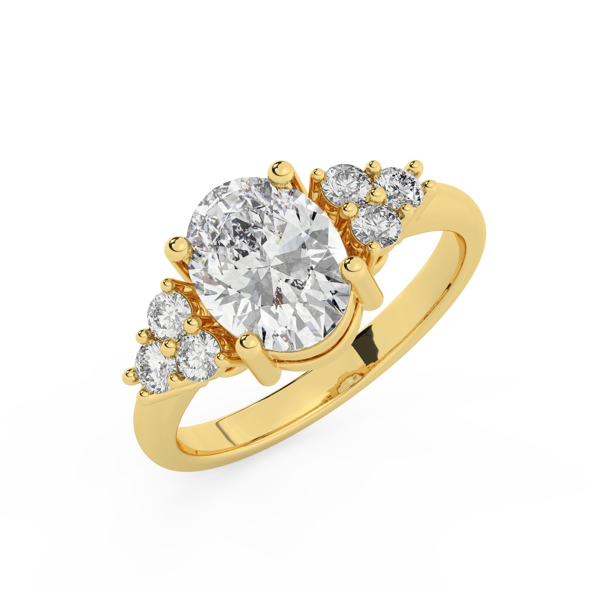 טבעת אירוסין סוליטר וזירקונים בצדדים דגם 50041 זהב צהוב 14 קראט במרכז זירקוניה 2.50 קראט בחיתוך אובל מסביב ובצדדים זירקונים בחיתוך עגול