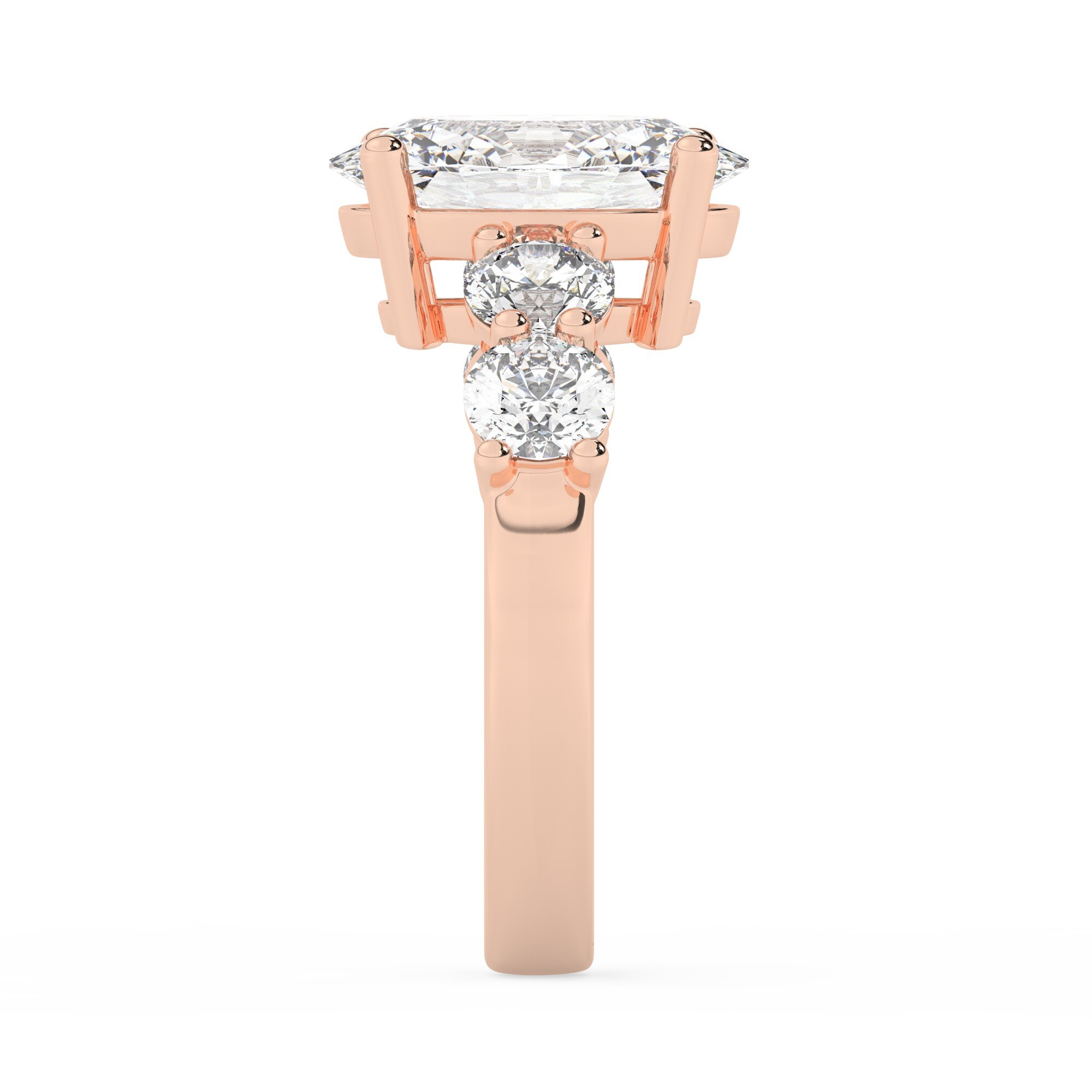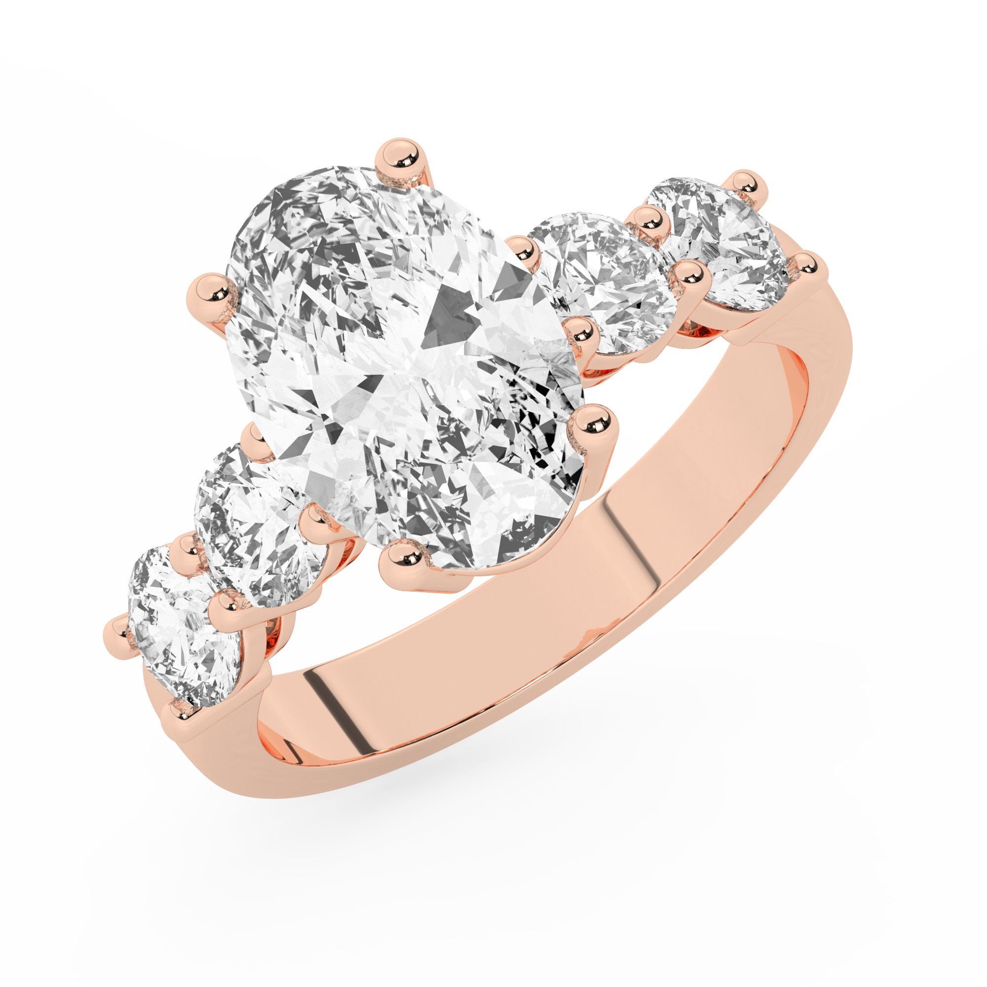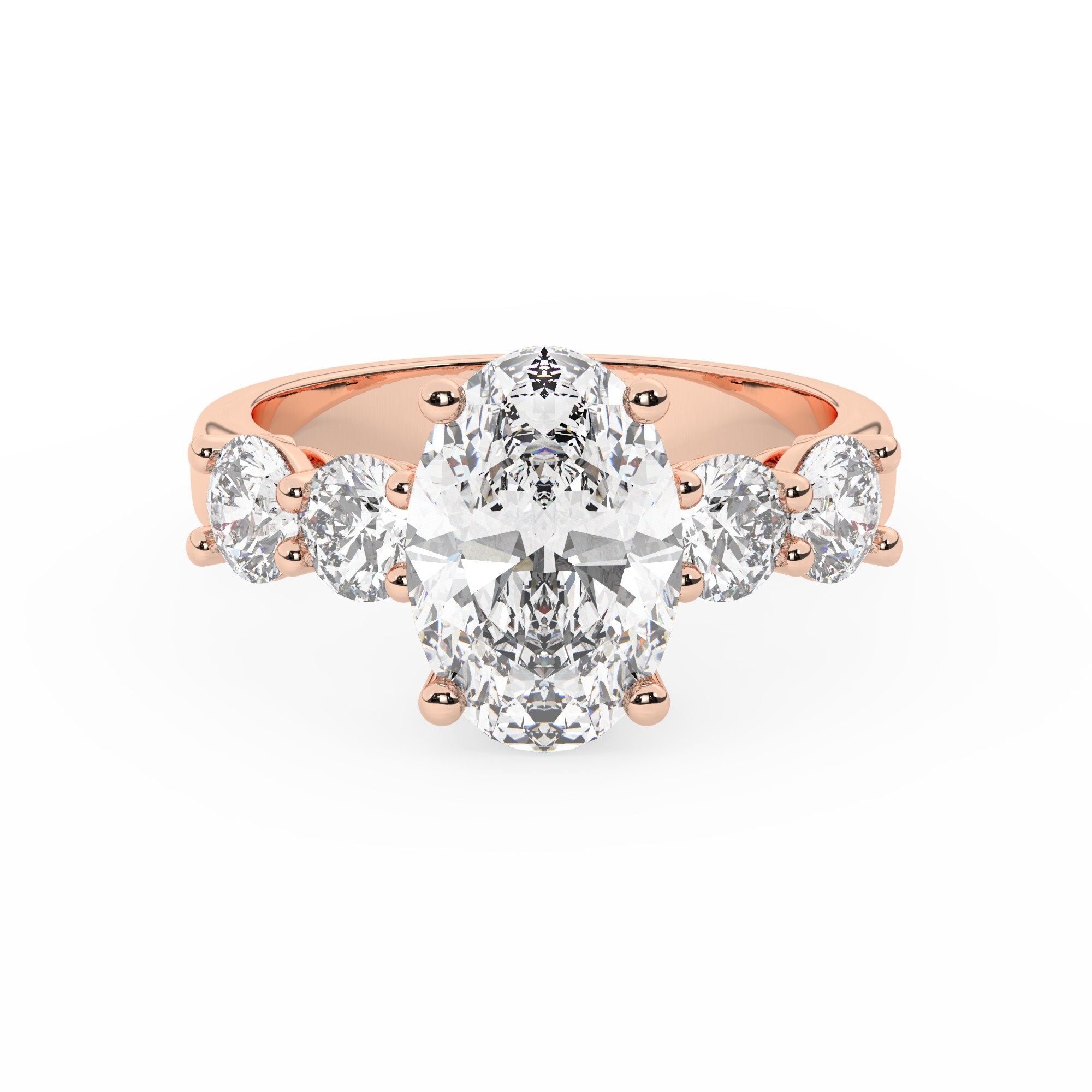 טבעת אירוסין סוליטר וזירקונים בצדדים דגם 50030 זהב אדום רוזגולד 14 קראט במרכז זירקוניה 3 קראט בחיתוך אובל מסביב ובצדדים זירקונים בחיתוך עגול