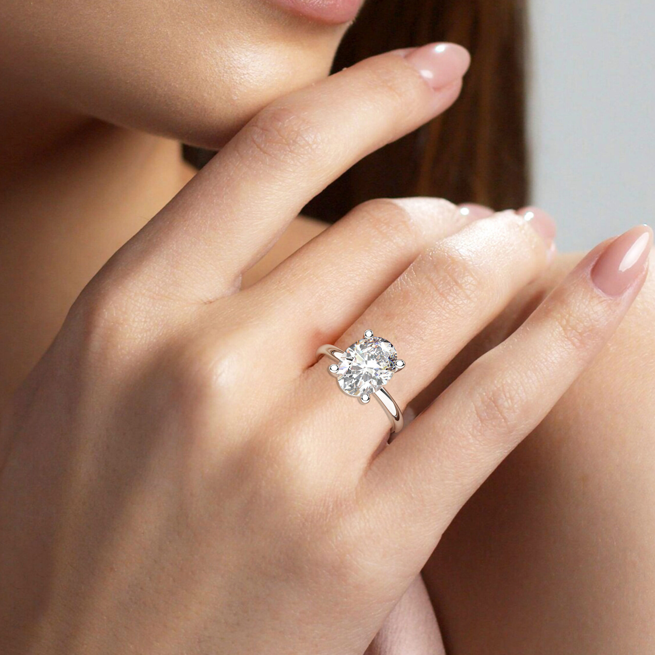 במרכז זירקוניה בגודל של 3 קראט בחיתוך אובל עם תעודה גמולוגית.