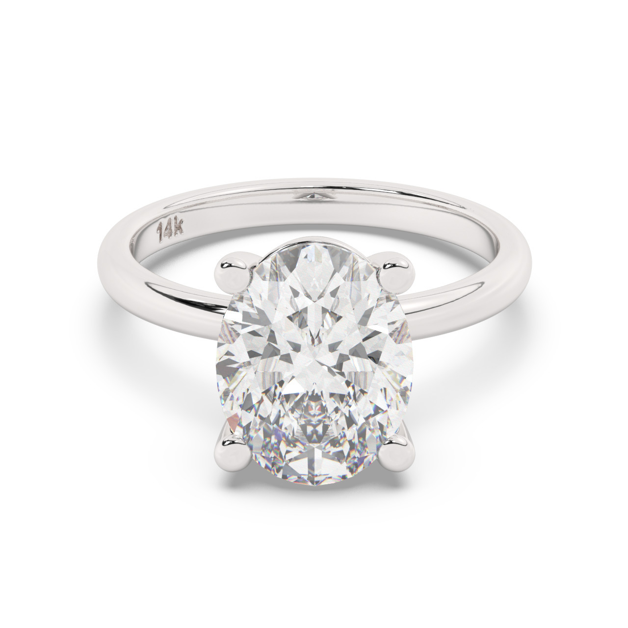 טבעת אירוסין סוליטר דגם 50016 זהב לבן 14 קראט במרכז זירקוניה במשקל כולל של 3 קראט בחיתוך אובל עם תעודה גמולוגית