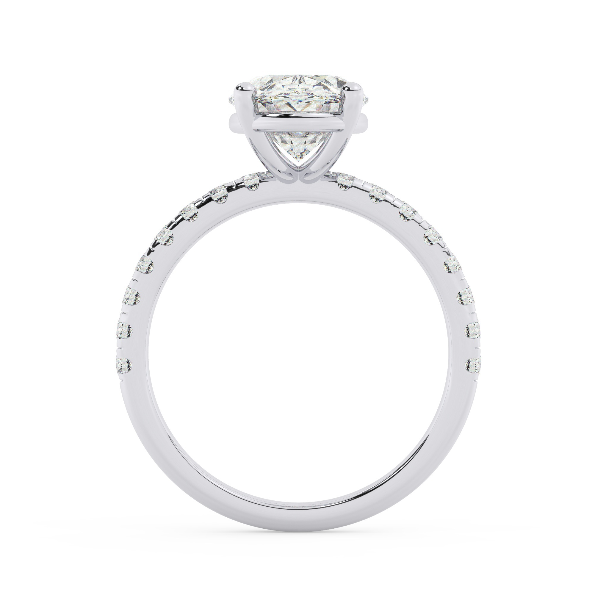 טבעת אירוסין סוליטר וזירקונים בצדדים דגם 50037 זהב לבן 14 קראט במרכז זירקוניה 3 קראט בחיתוך אובל מסביב ובצדדים זירקונים בחיתוך עגול